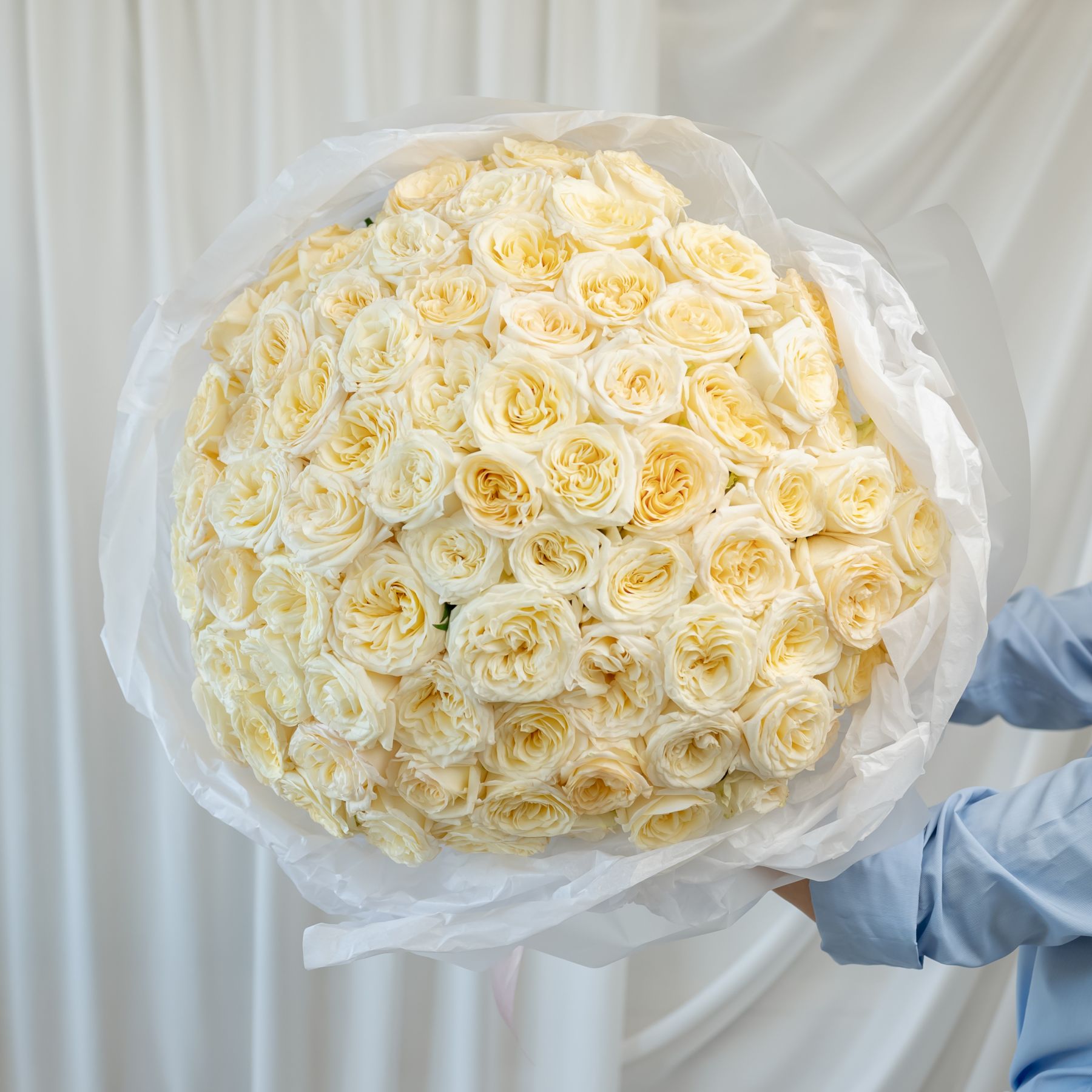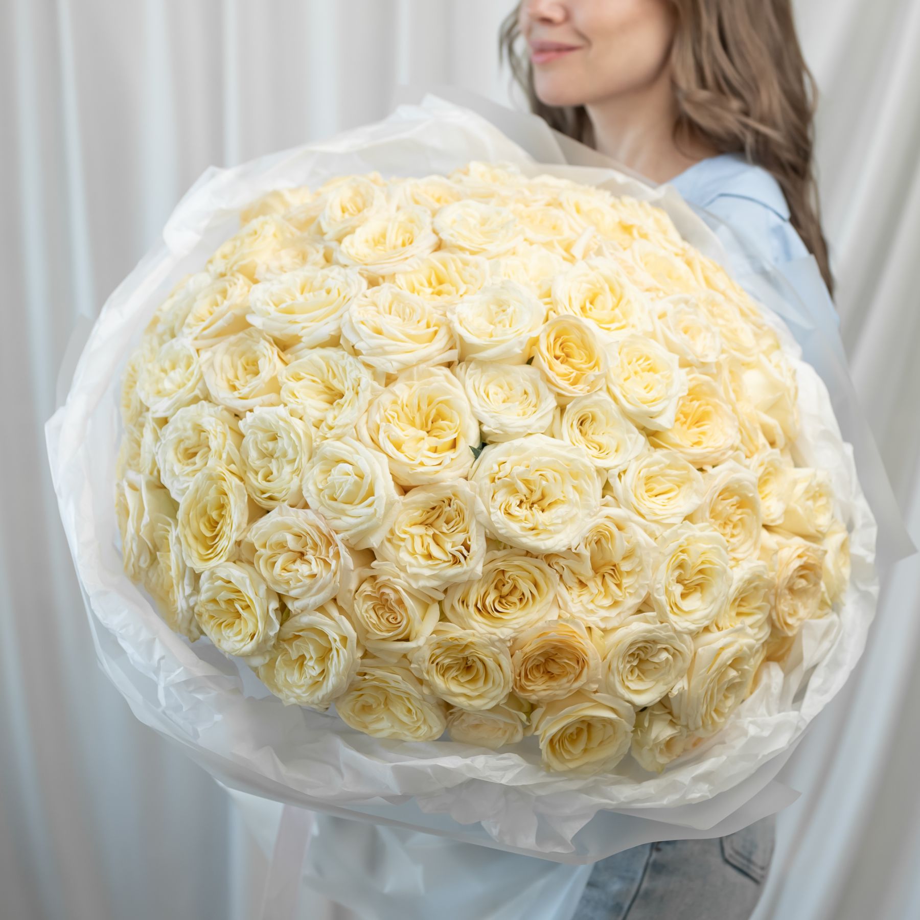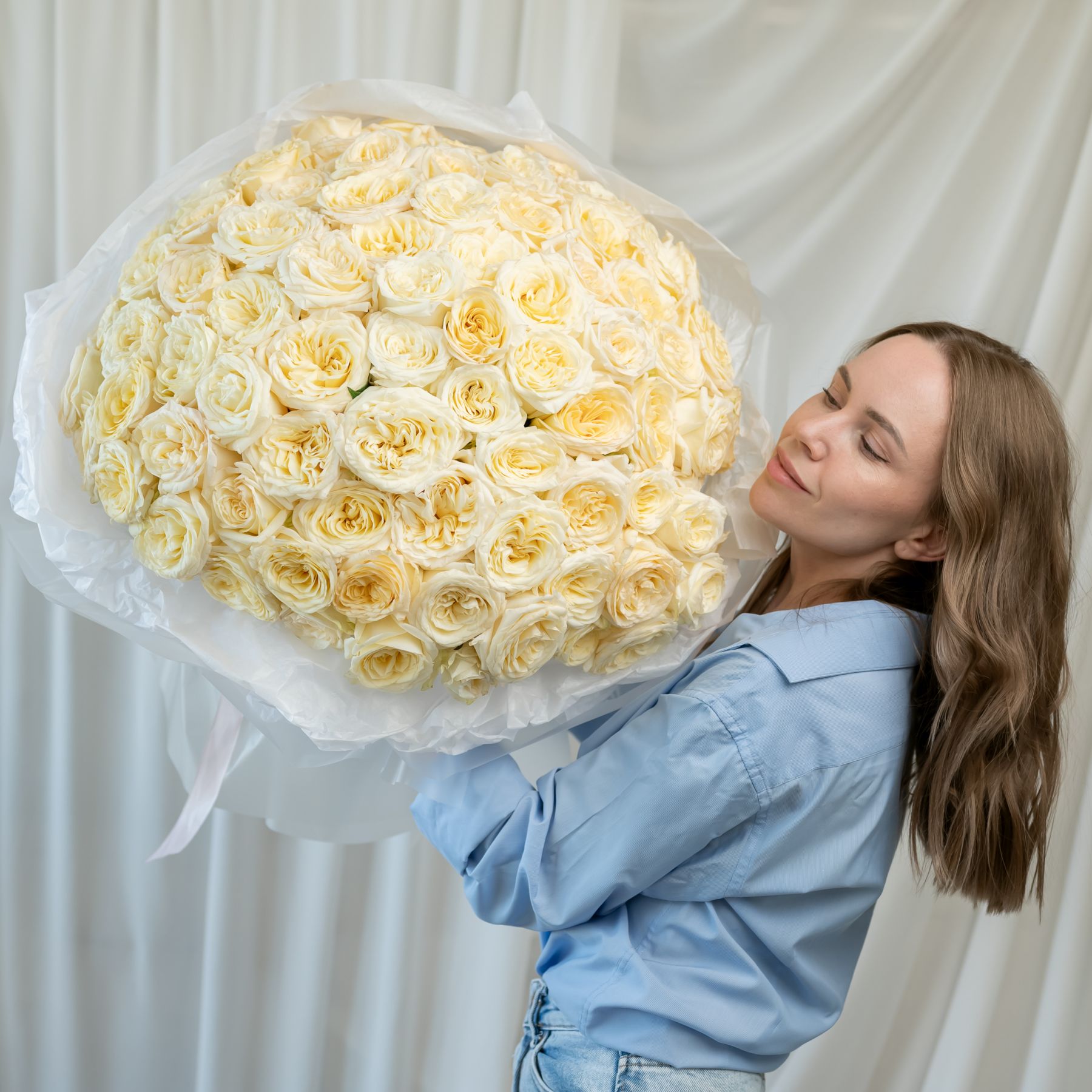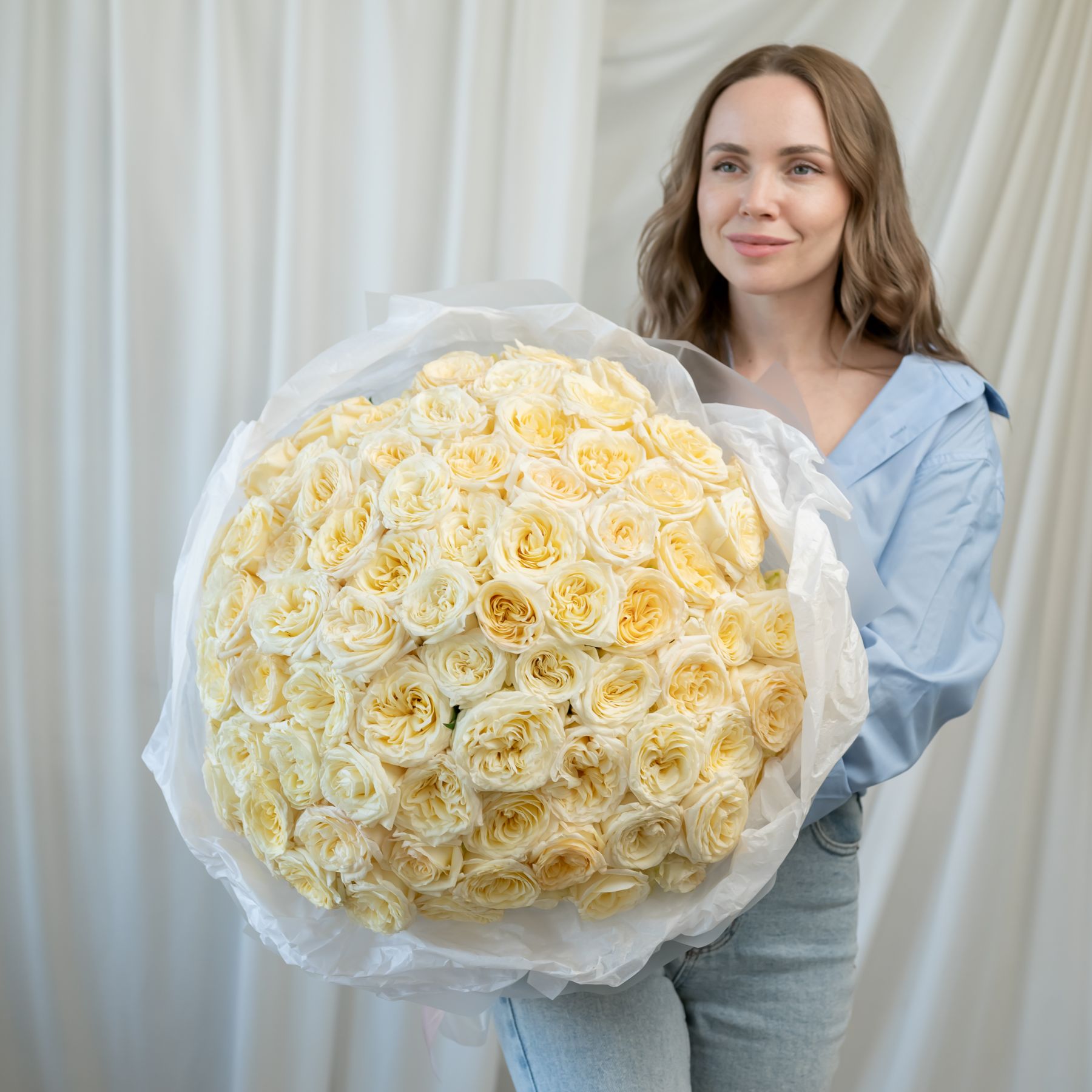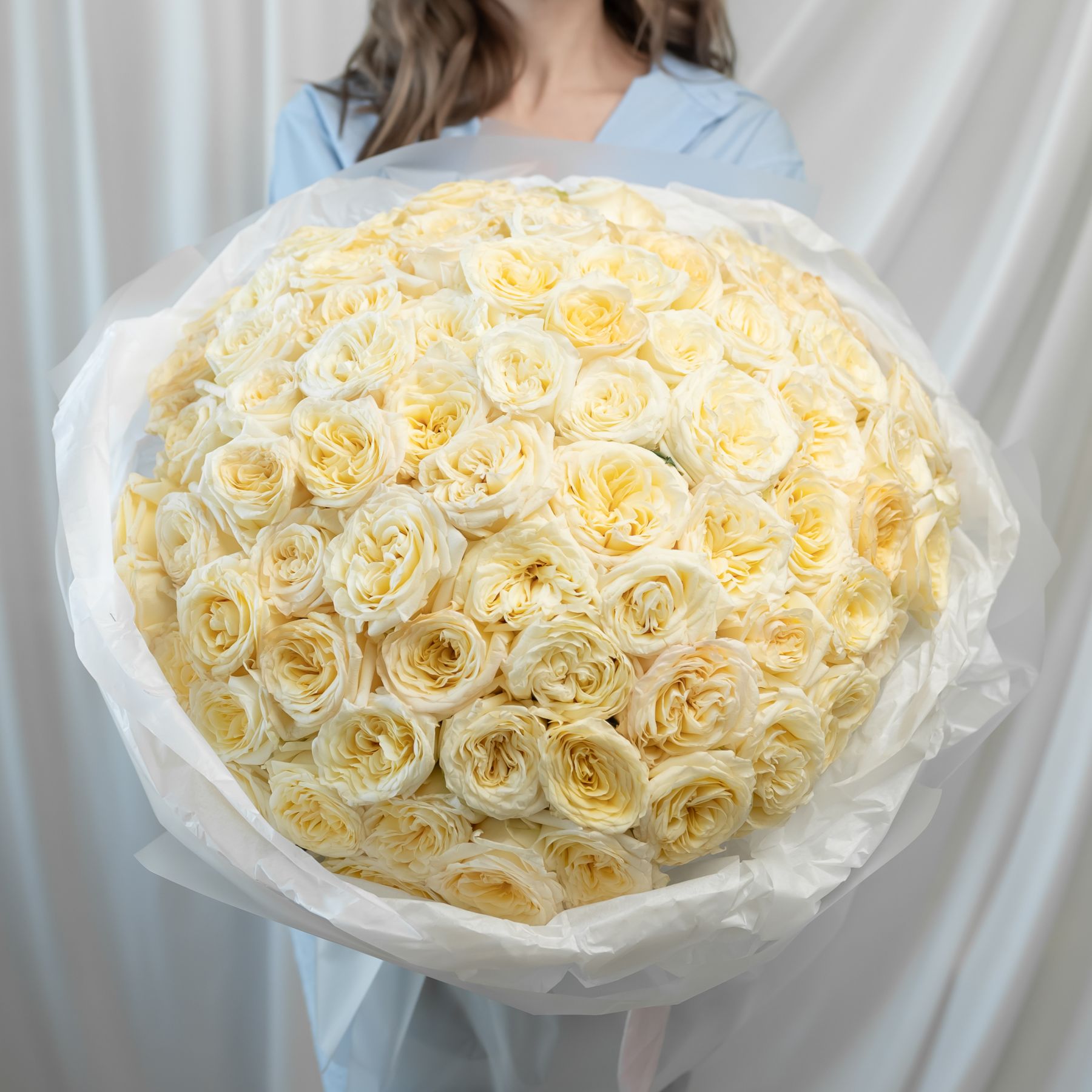 101 кремовая роза (60 см) в дизайнерской упаковке.