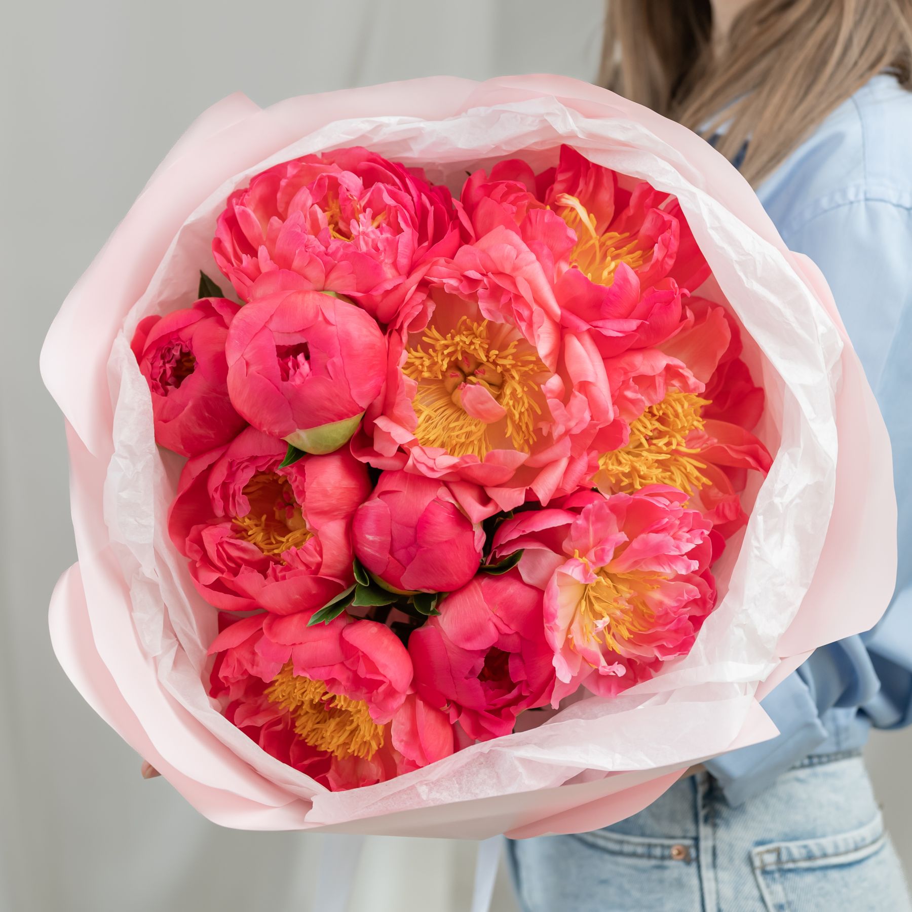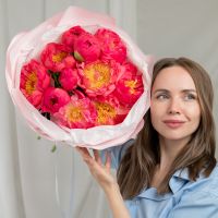 В составе 11 пионов (Корал Шарм) в объемной стильной упаковке.