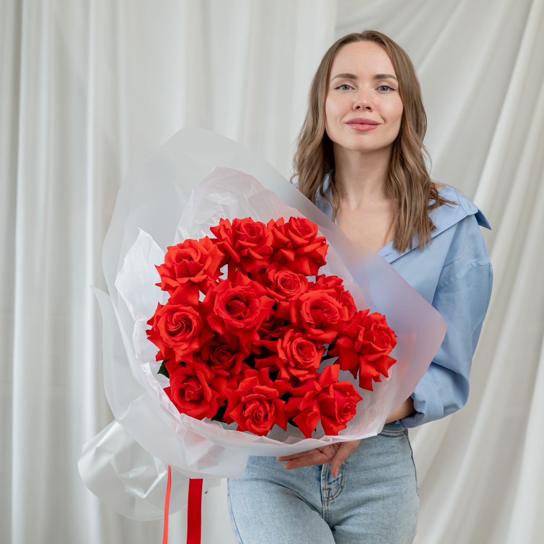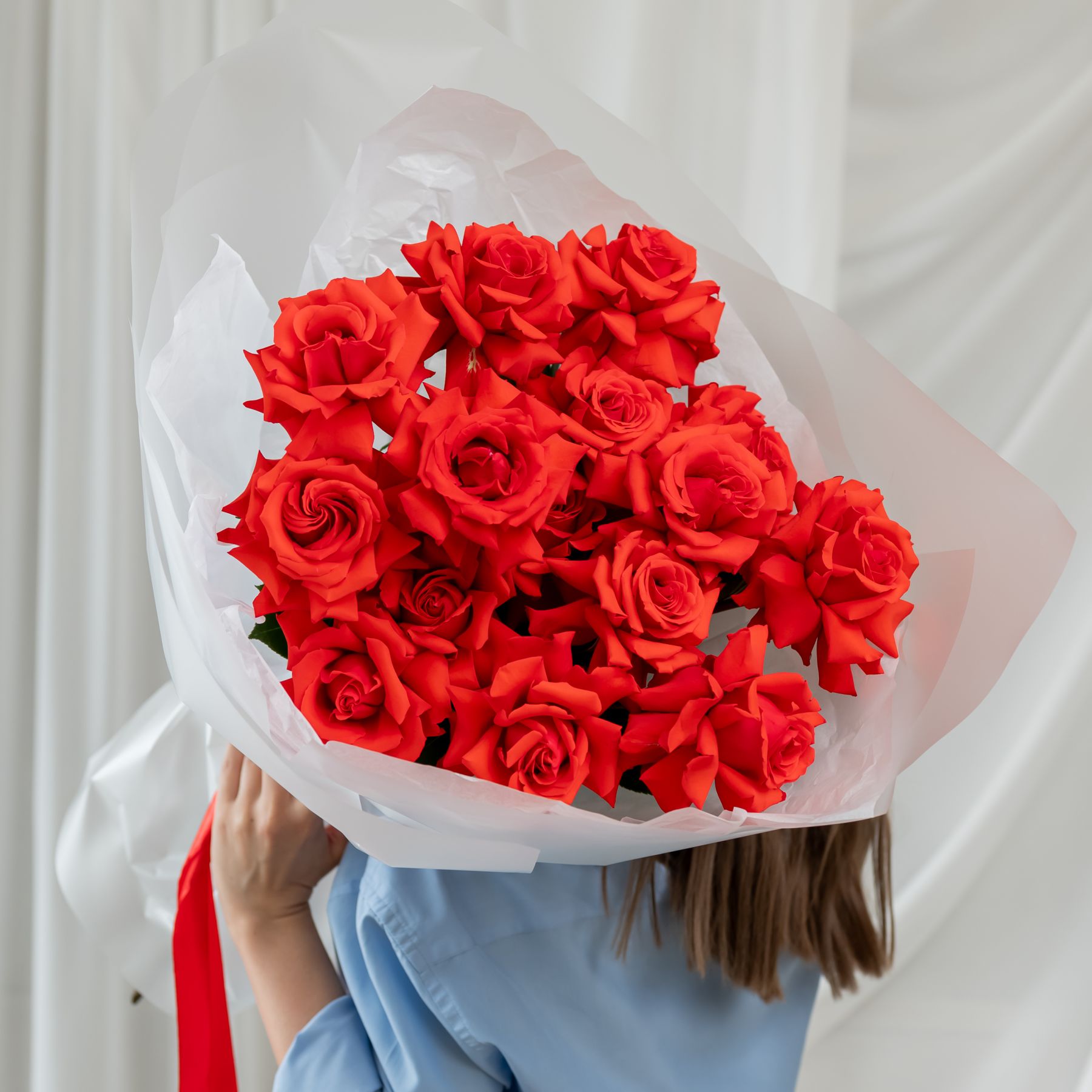 В составе 15 Французскиз роз (сорт Нина) в объемной красивой упаковке.
