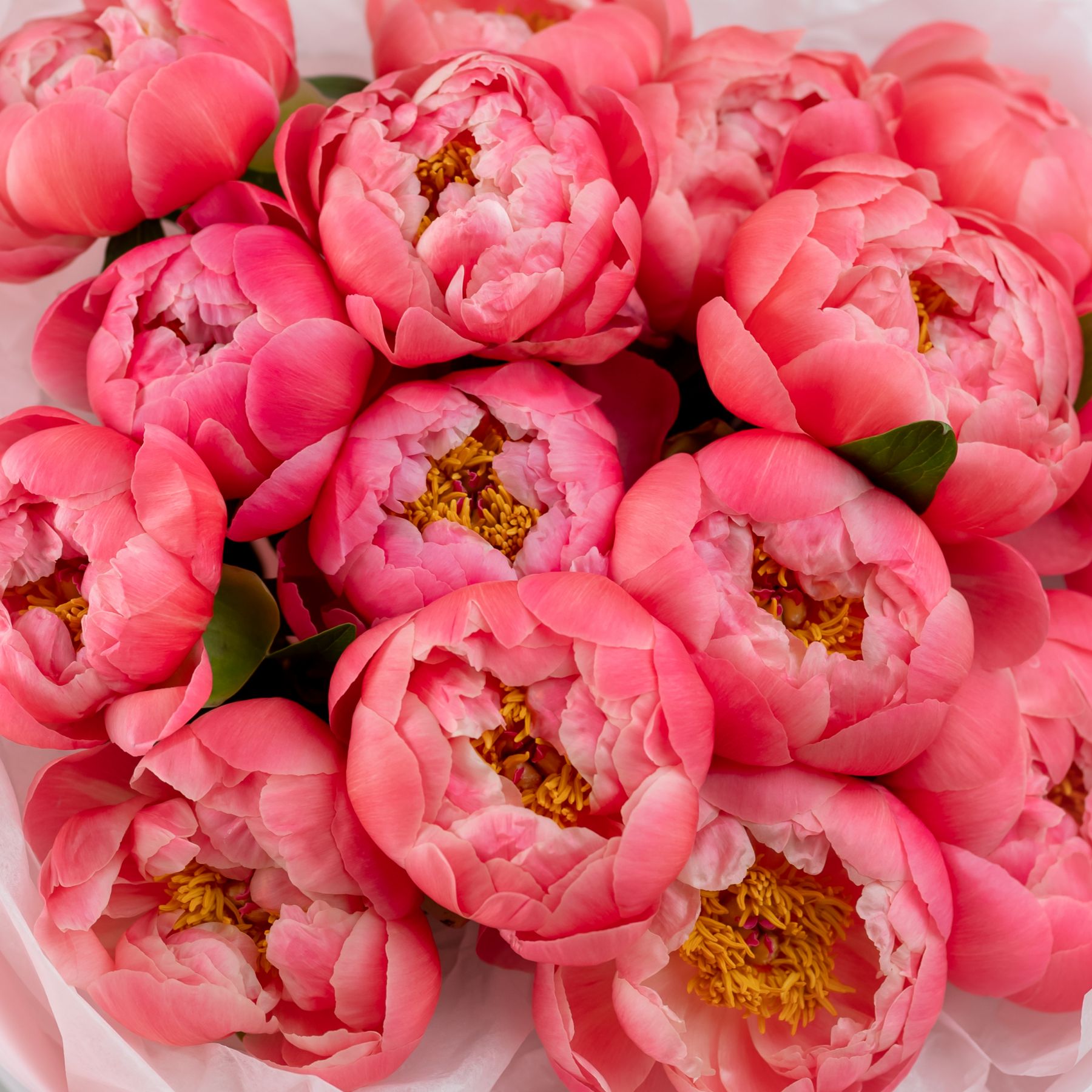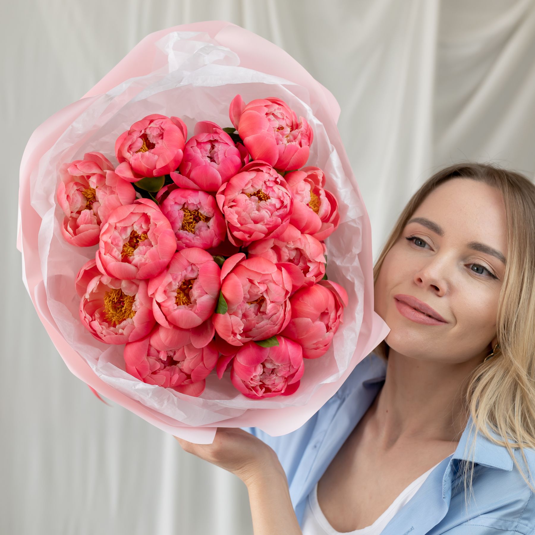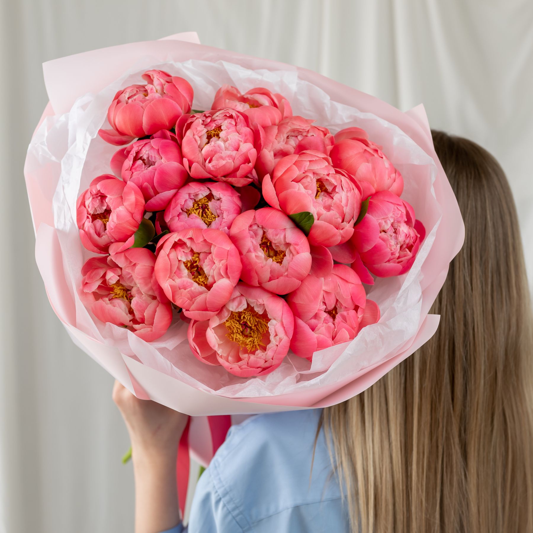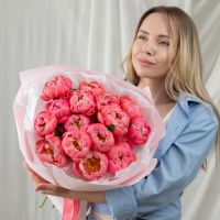 В составе 15 пионов (Корал Шарм) в объемной стильной упаковке.