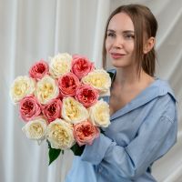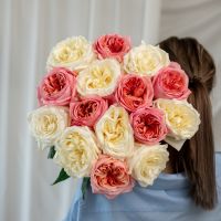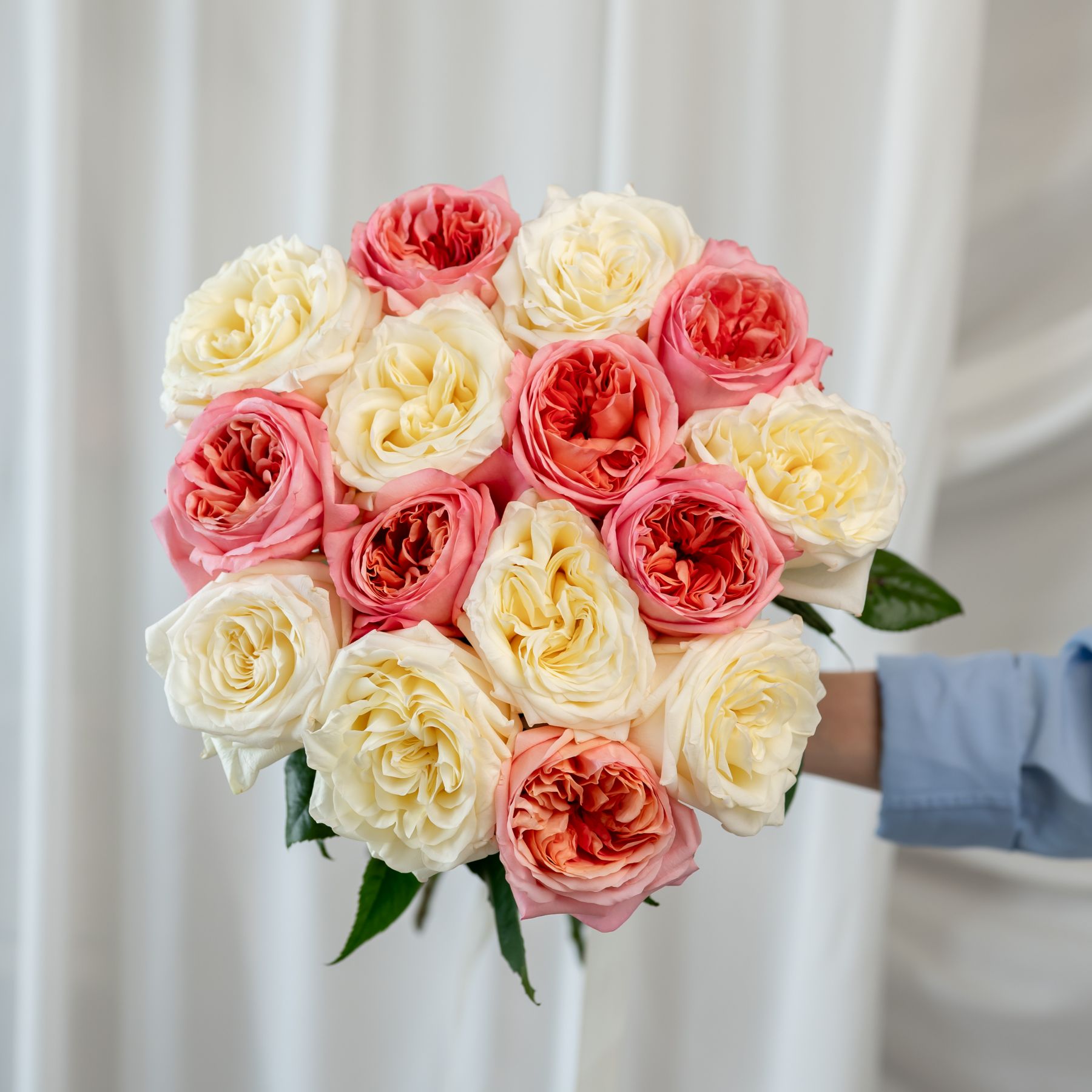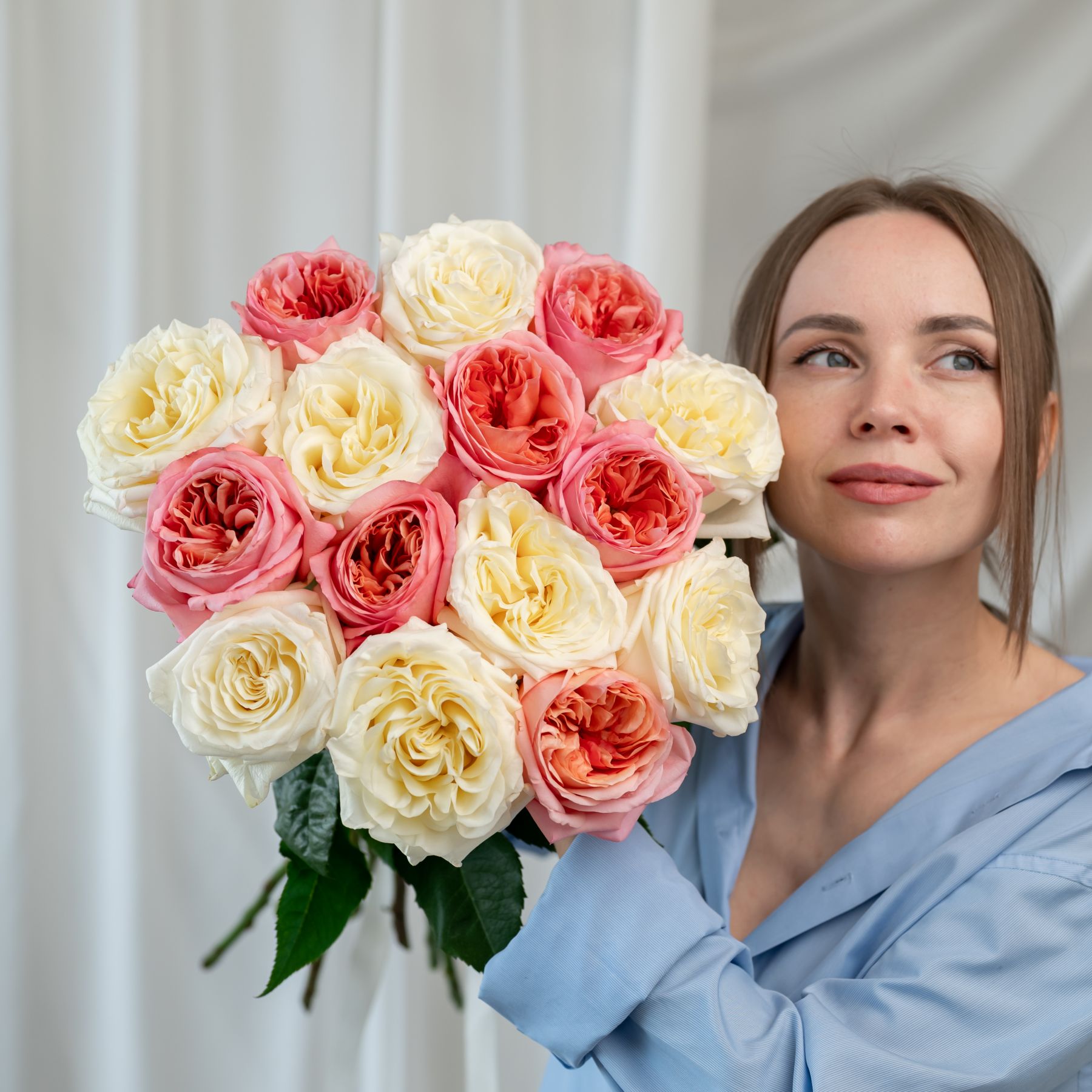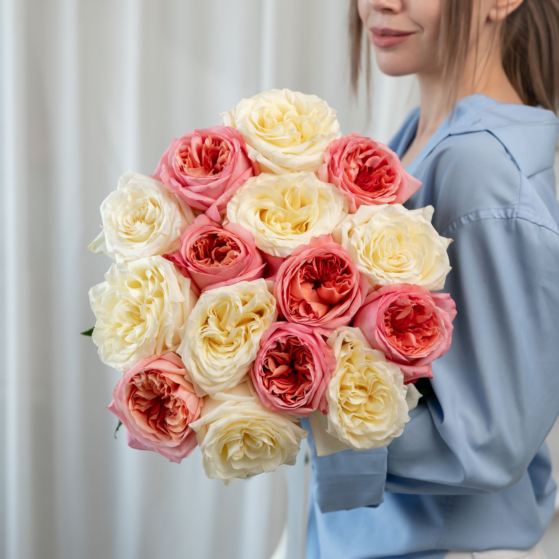 15 пионовидных роз сорт Кендл Лайт (8 шт) ,Пинк Экспрешен (7 шт)