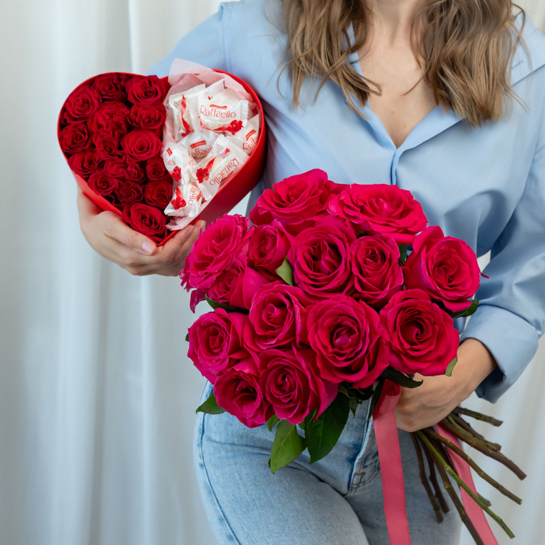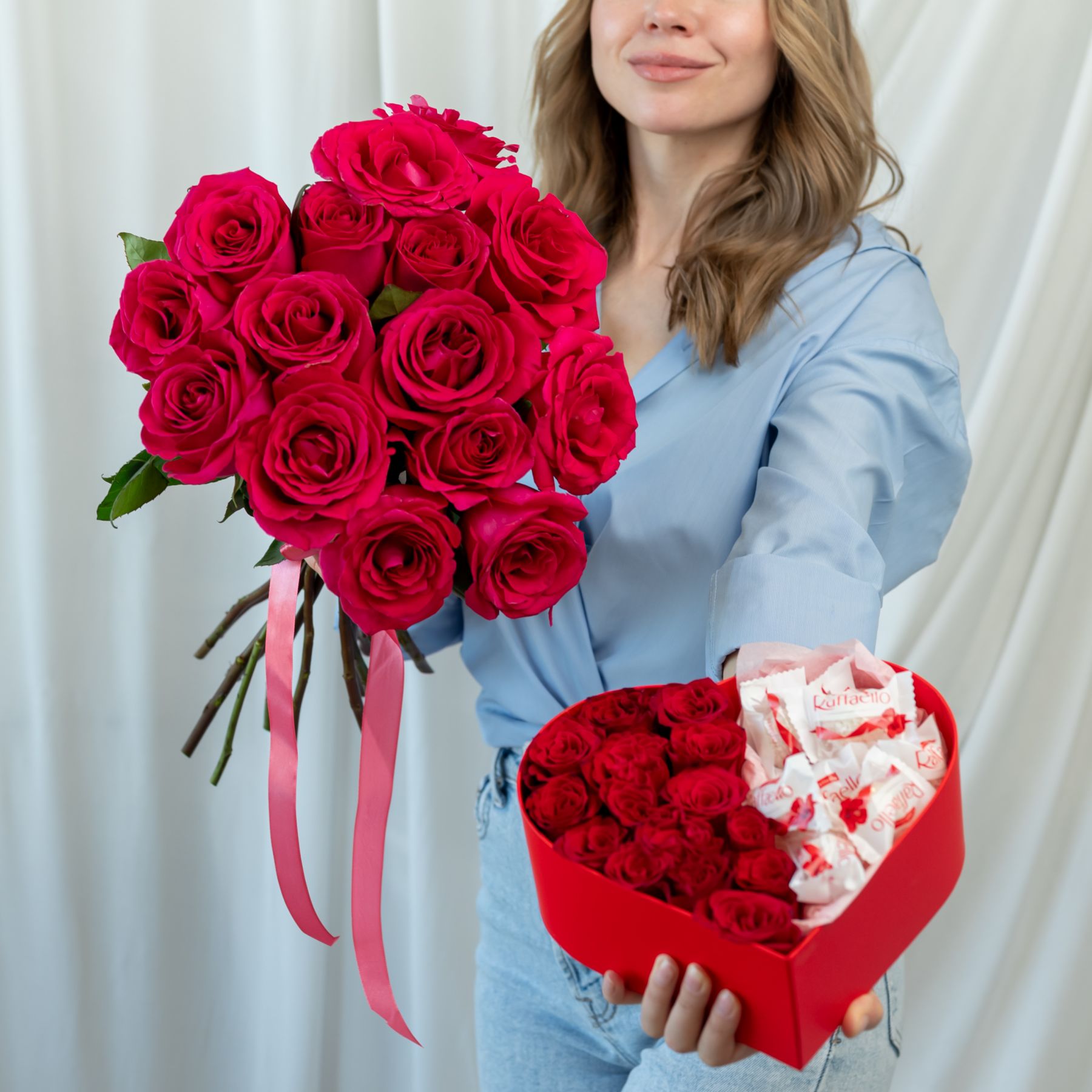 Сердце : 15 кений (сорт Кения), раффаэло 11 шт.