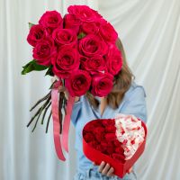 В составе 15 розовых роз (сорт Пинк Флойд) первязаны атласной лентой.