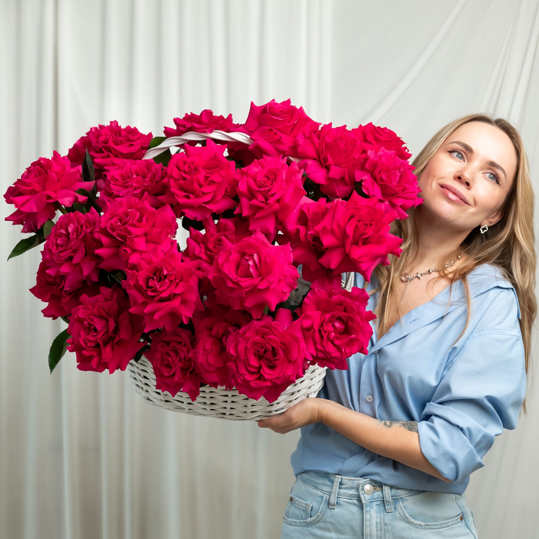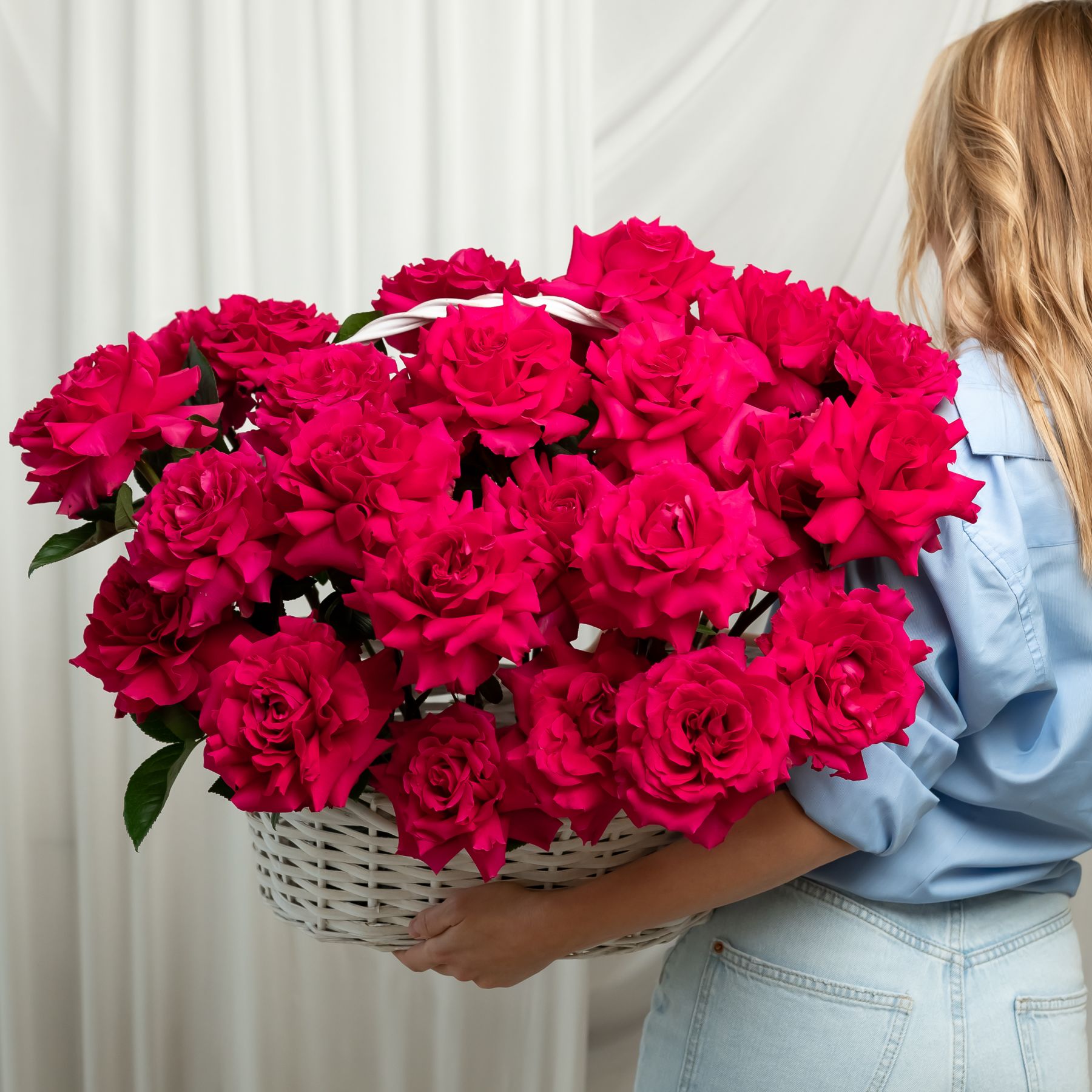 25 Французская роза (Пинк Флойд) в корзине размер L (40/37)