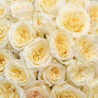 25 кремовых роз (60 см) в дизайнерской упаковке.