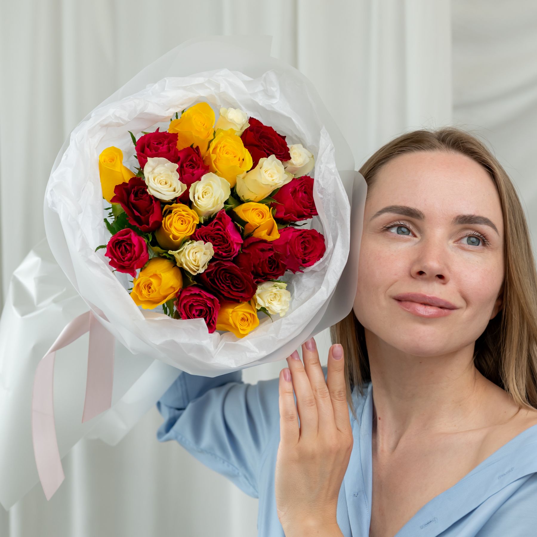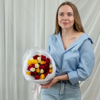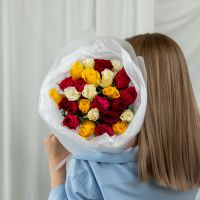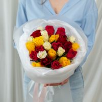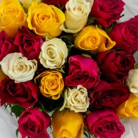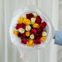 25 роз микс (сорт Кения 40 см) в объемной стильной упаковке.