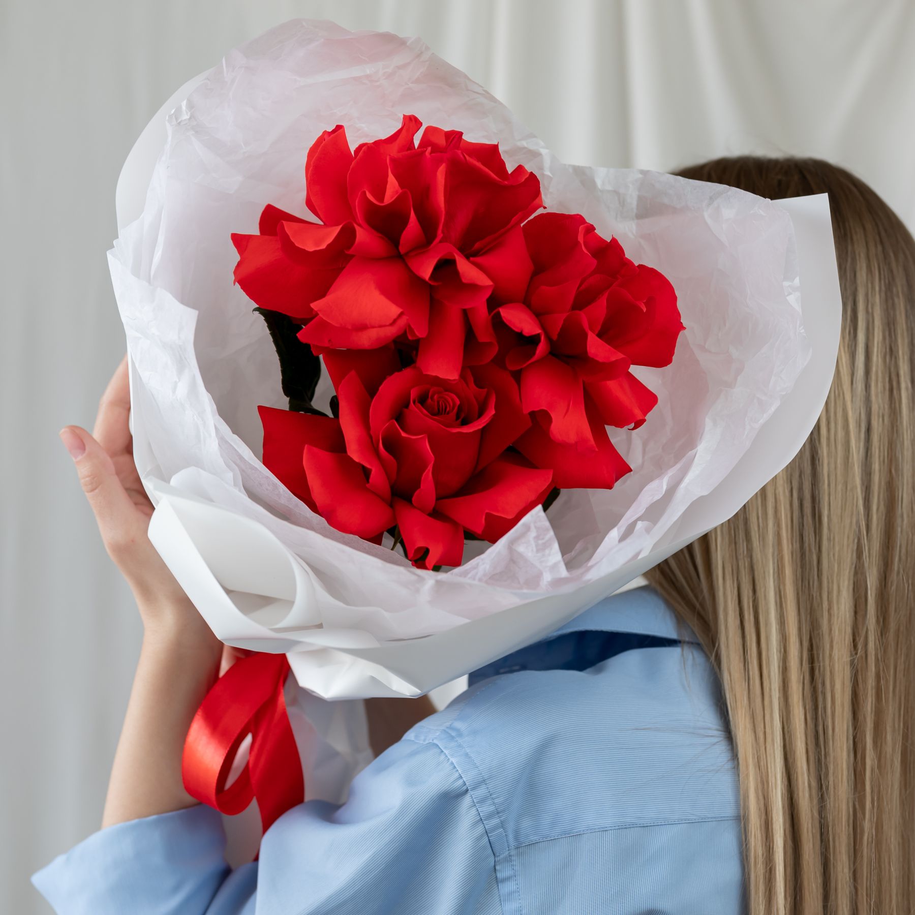 В составе 3 Французскиз роз (сорт Нина) в объемной красивой упаковке.