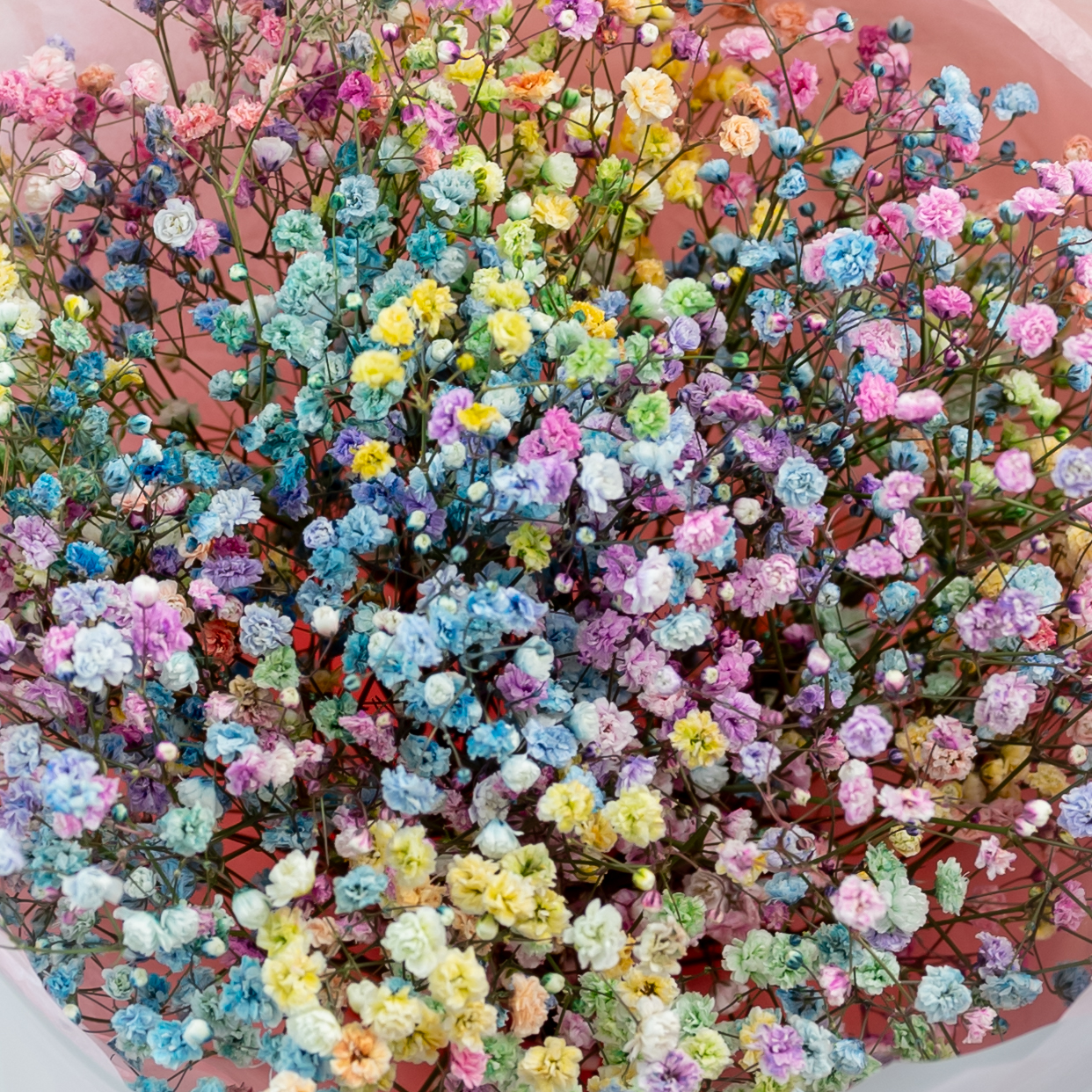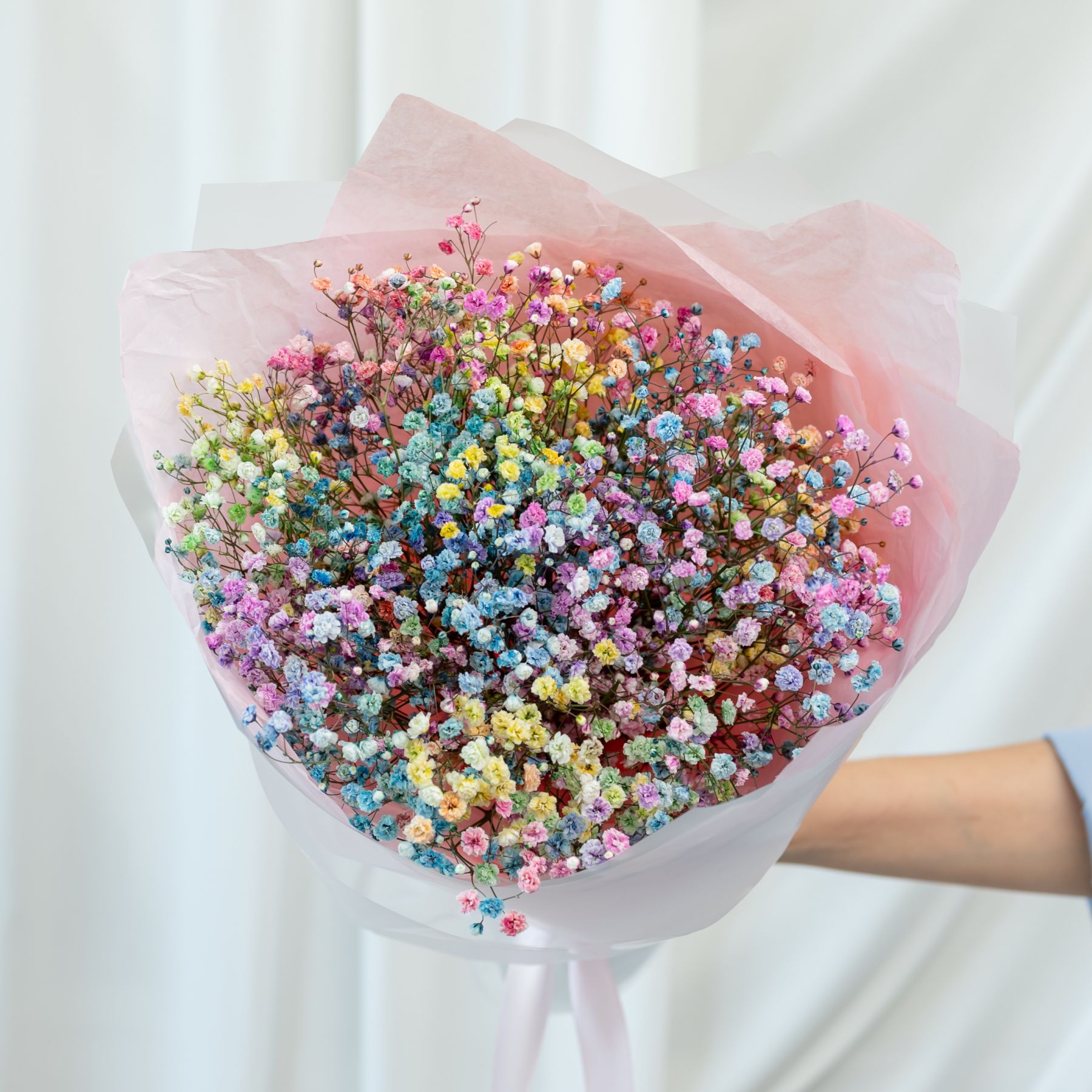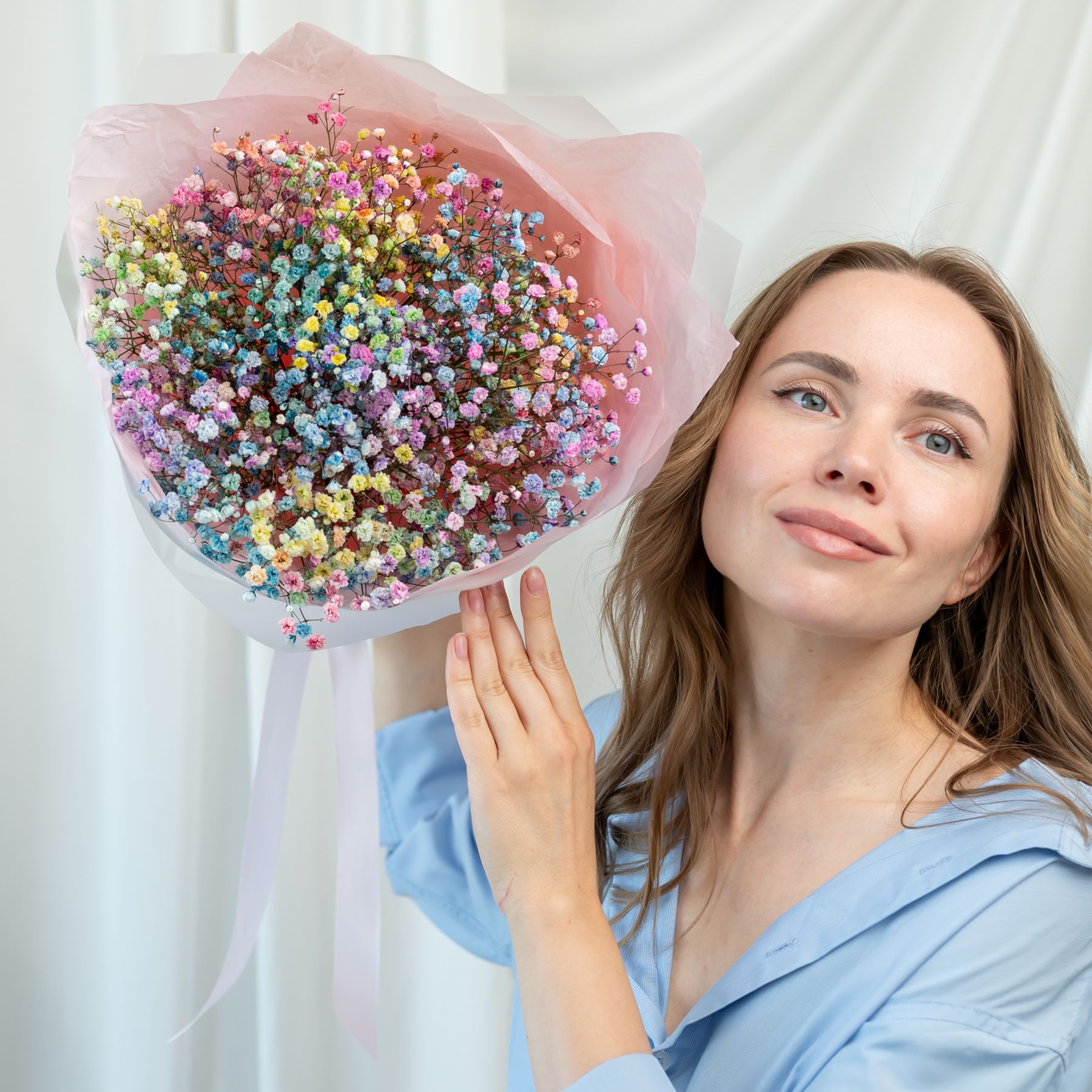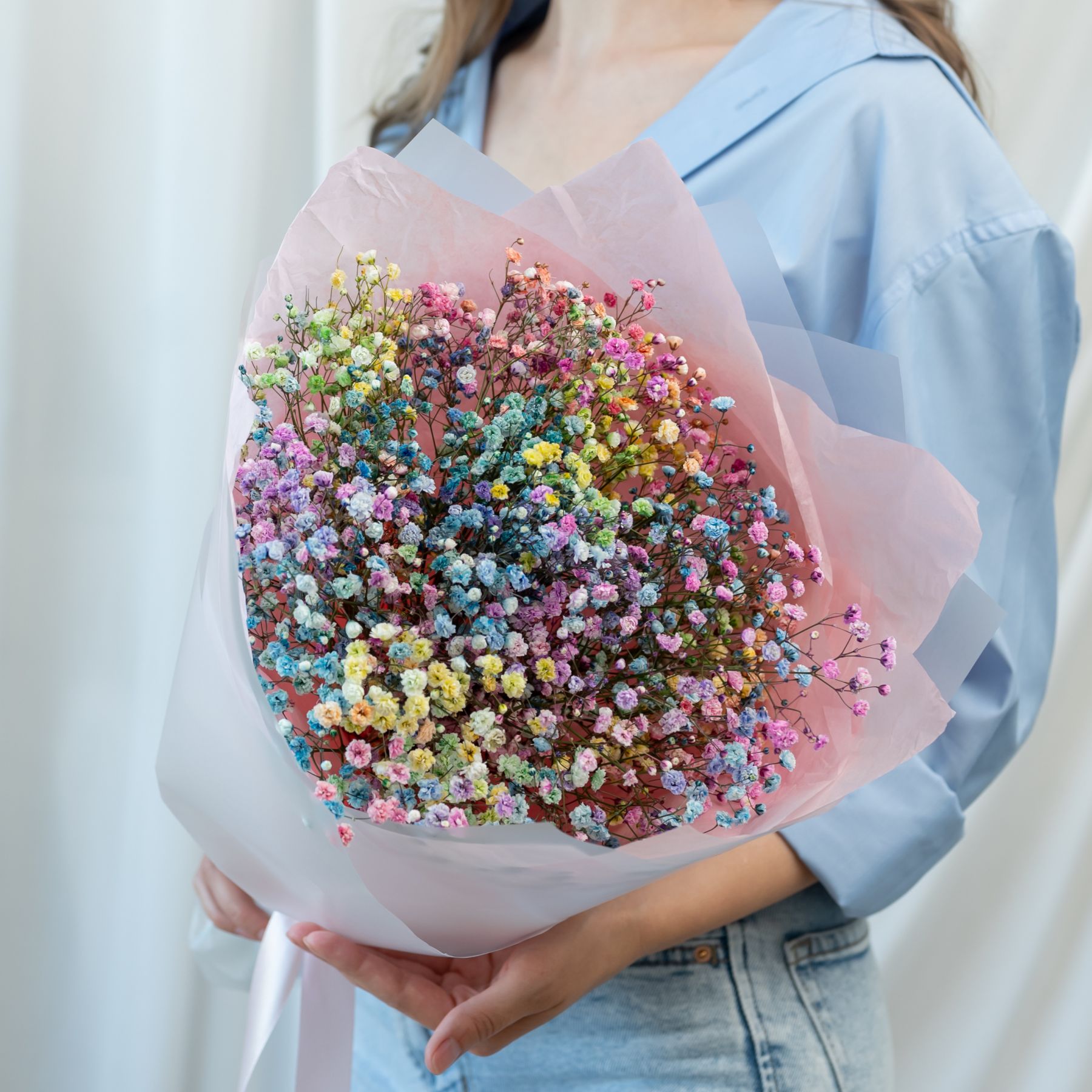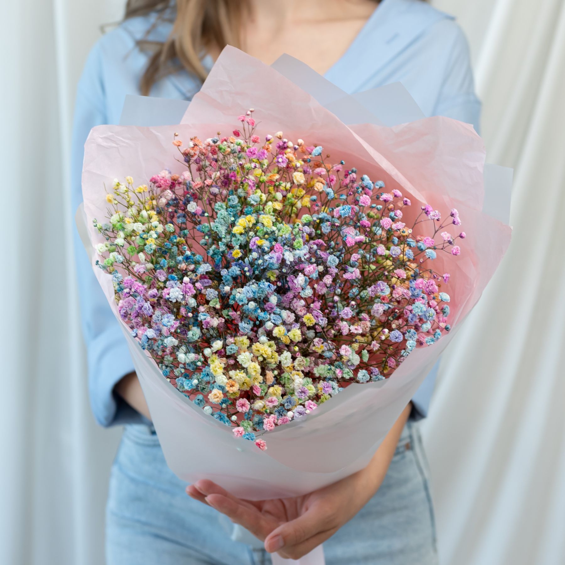 В составе 5 радужных гипсофил в дизайнерской упаковке.