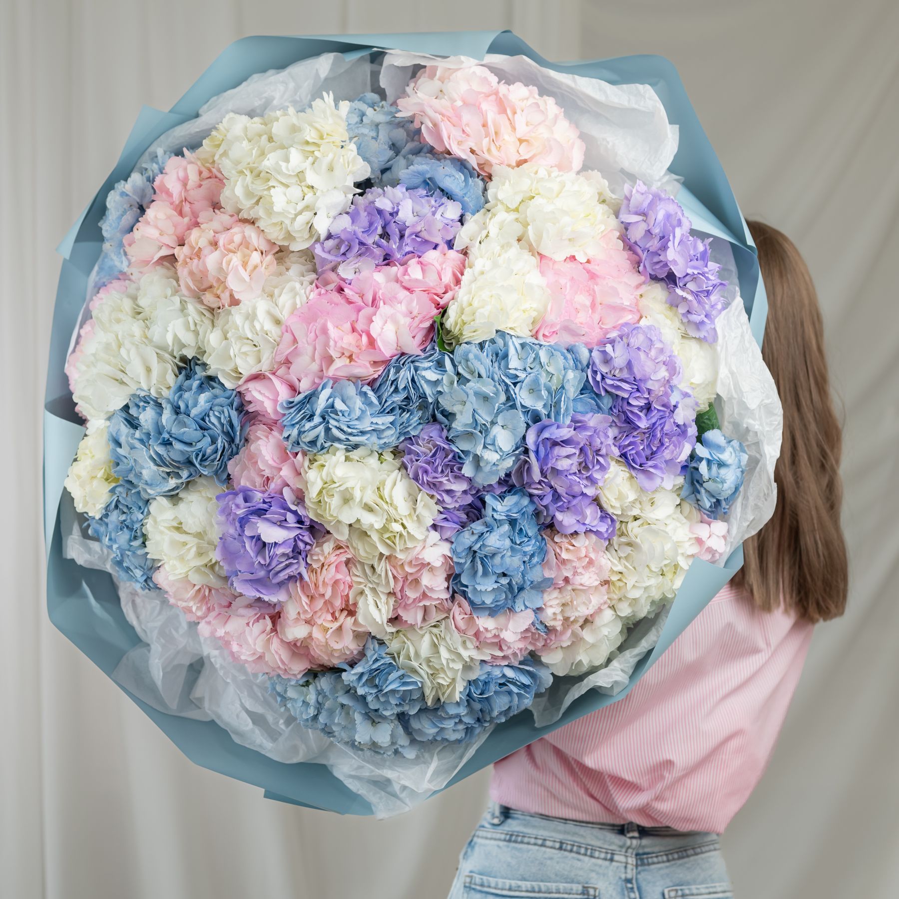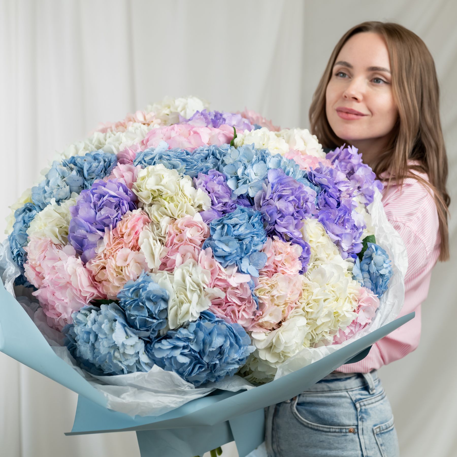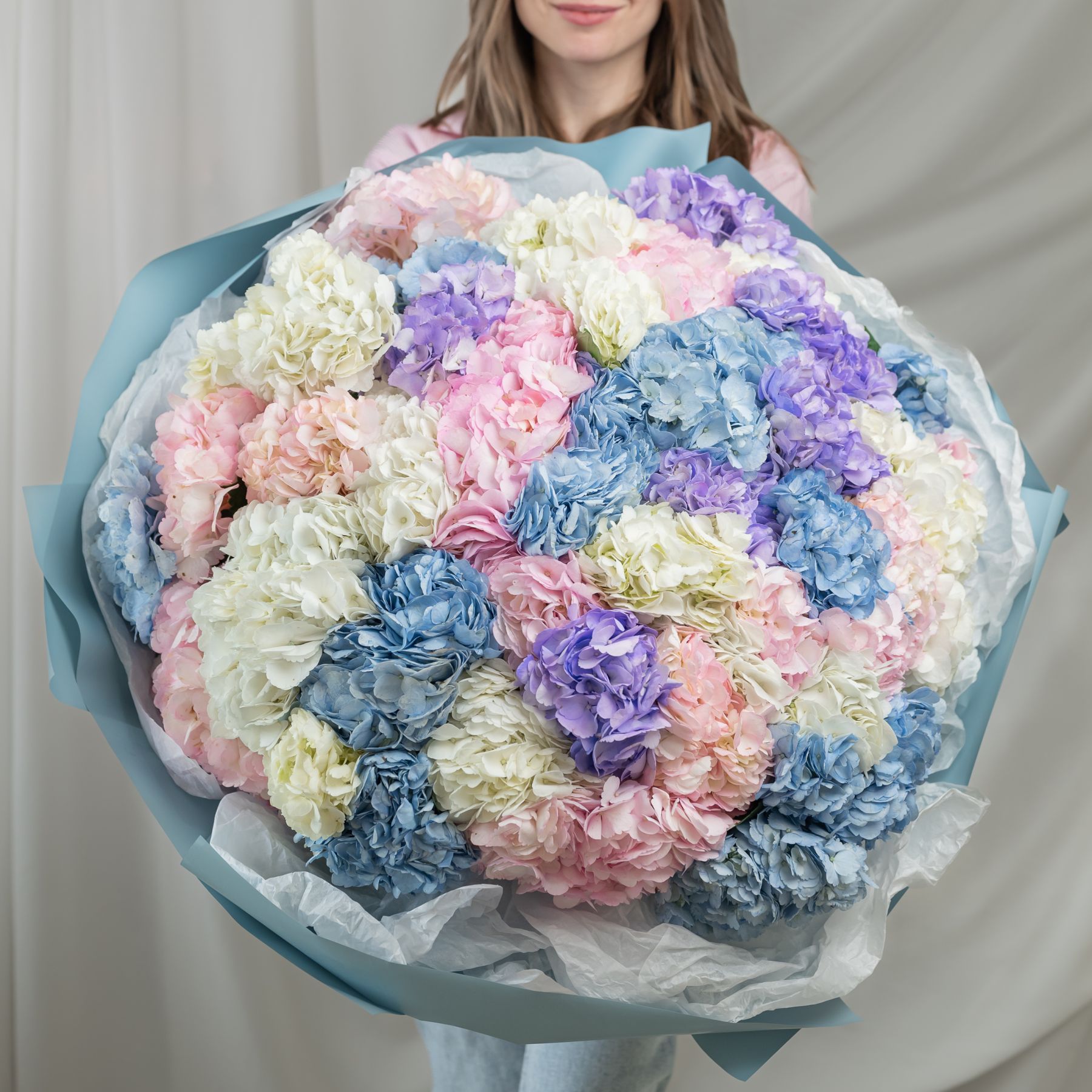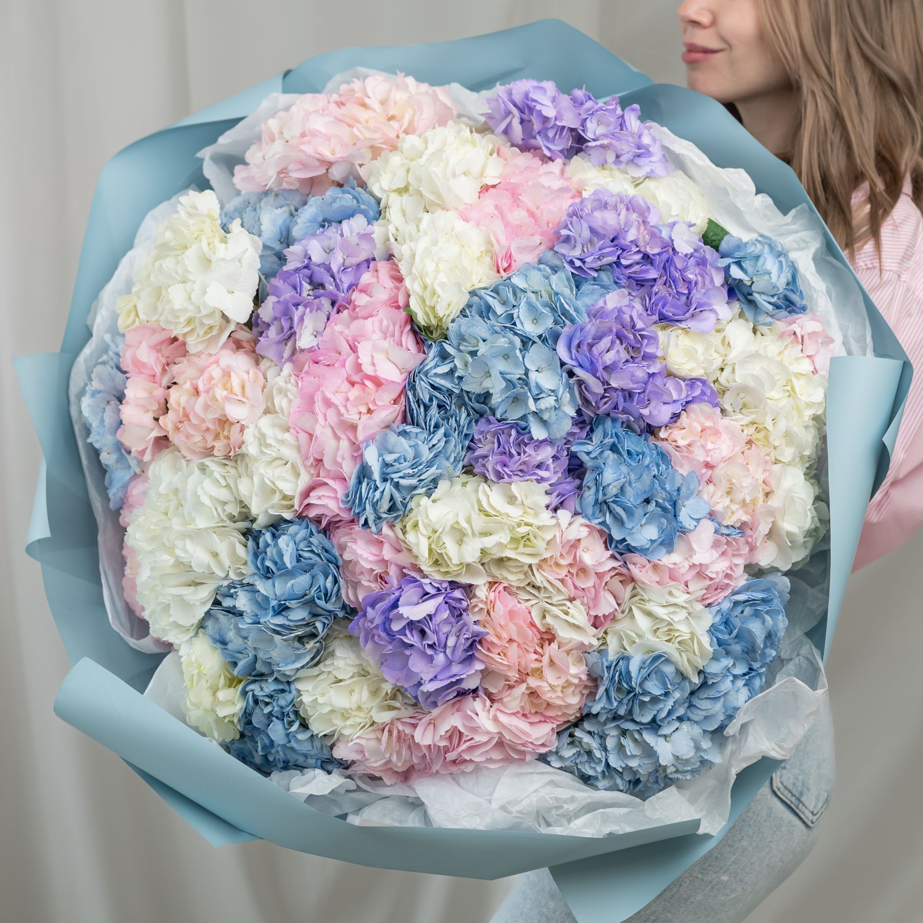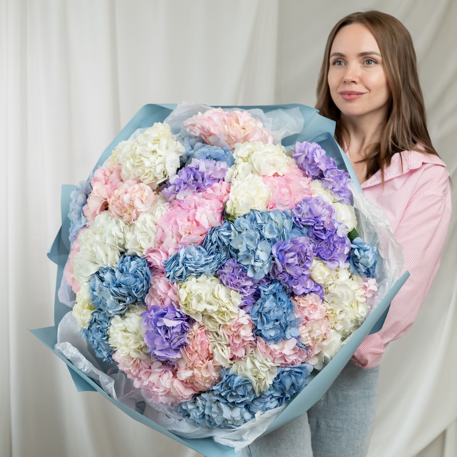 В составе 51 гортензия в объемной красивой упаковке.