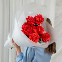 В составе 7 Французскиз роз (сорт Нина) с эвкалиптом в объемной красивой упаковке.