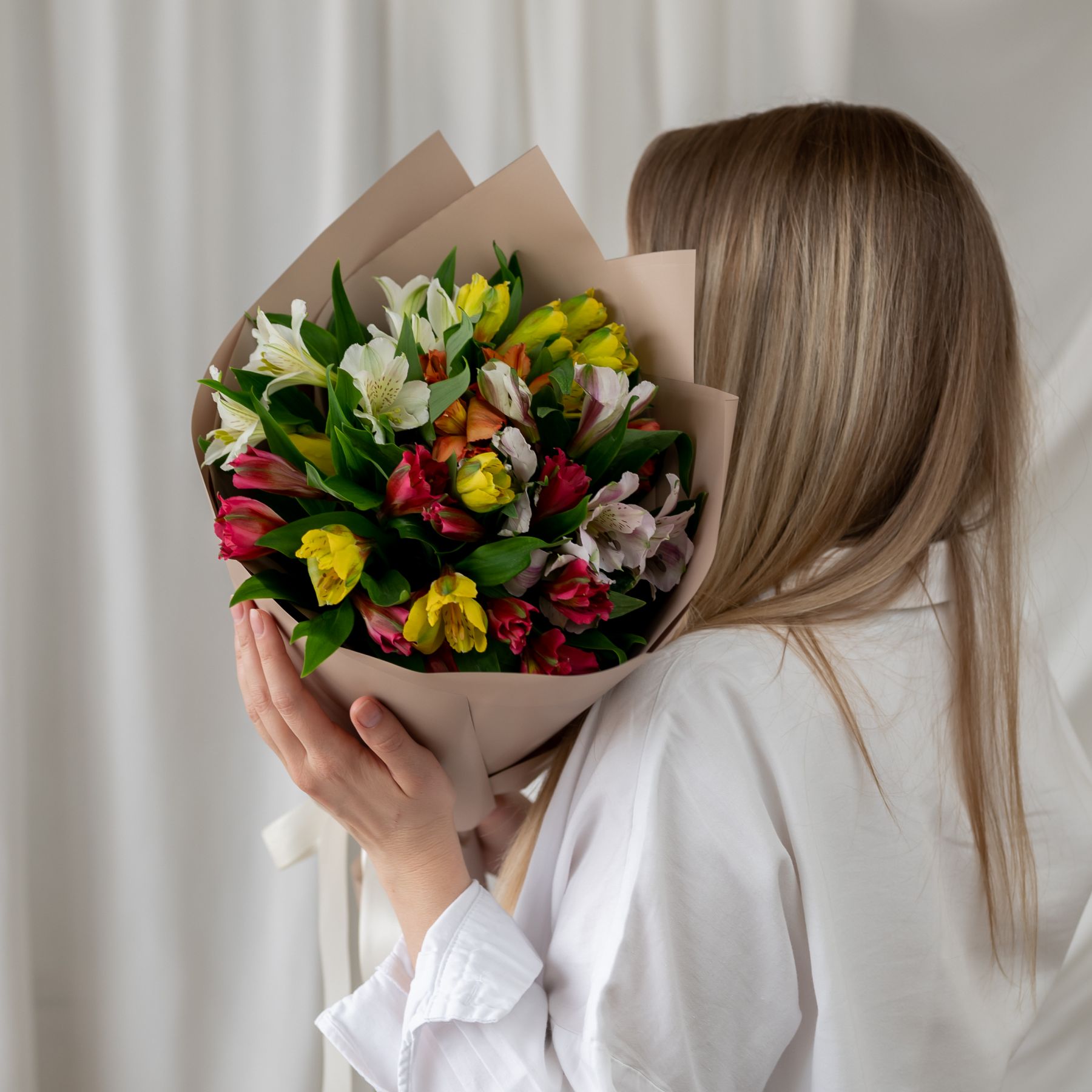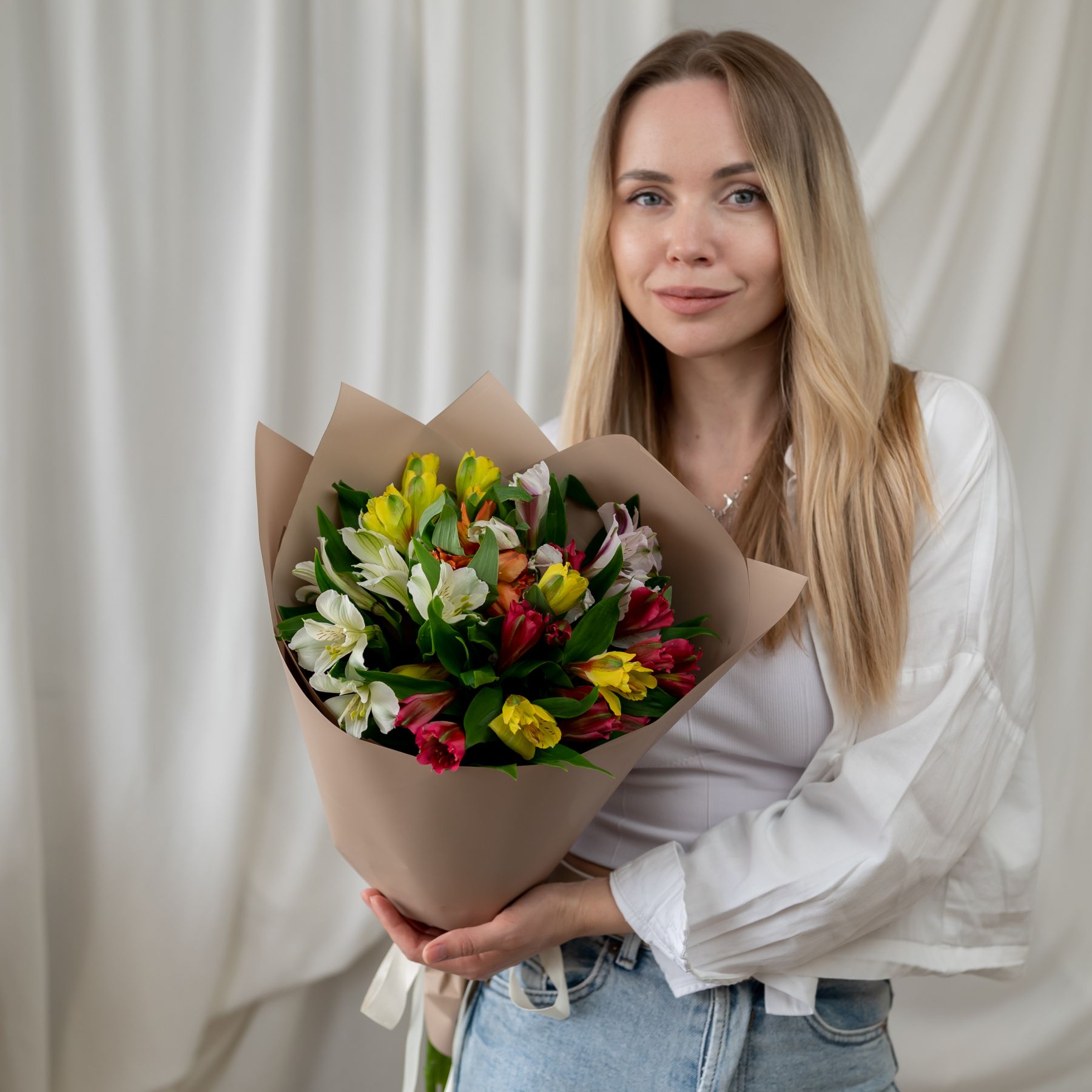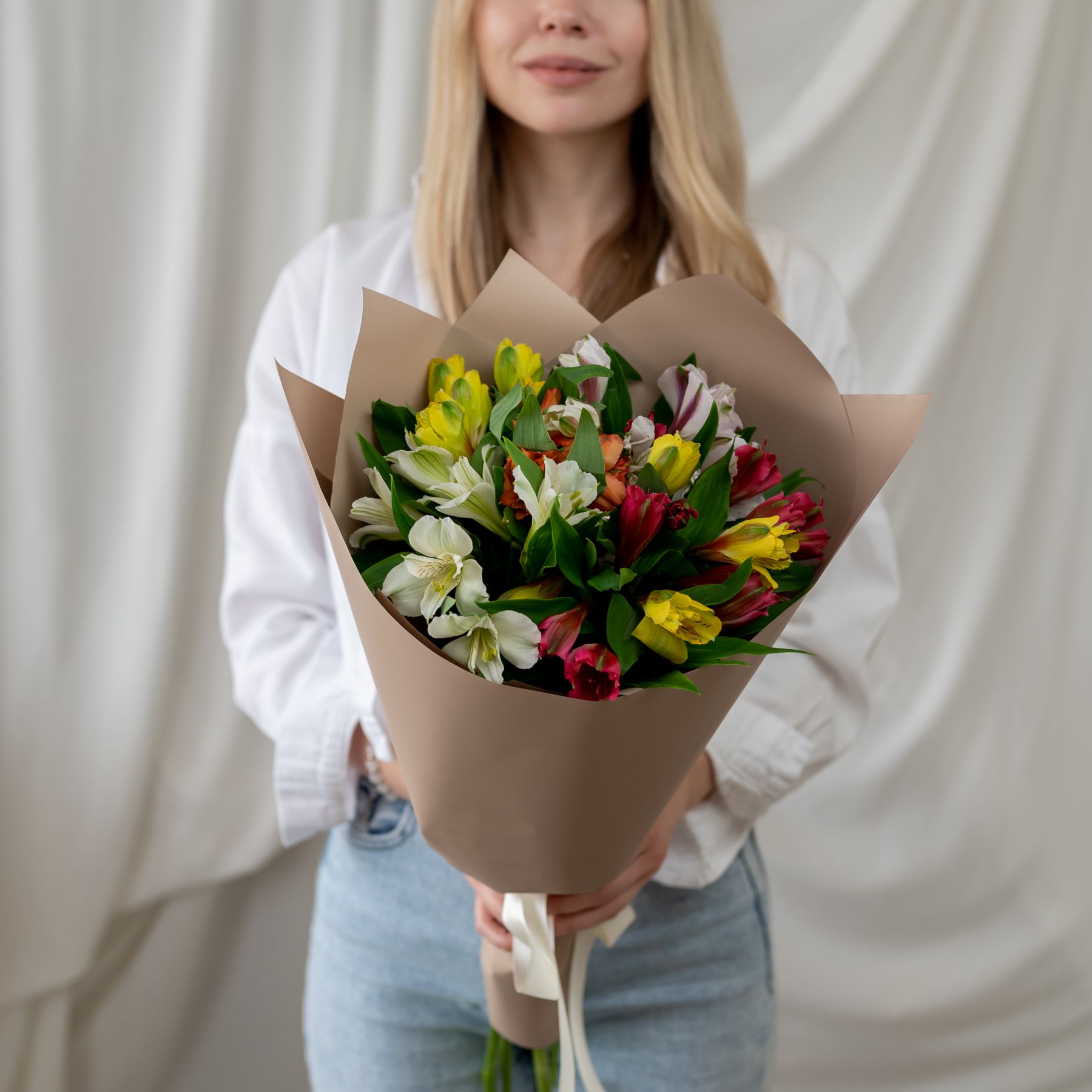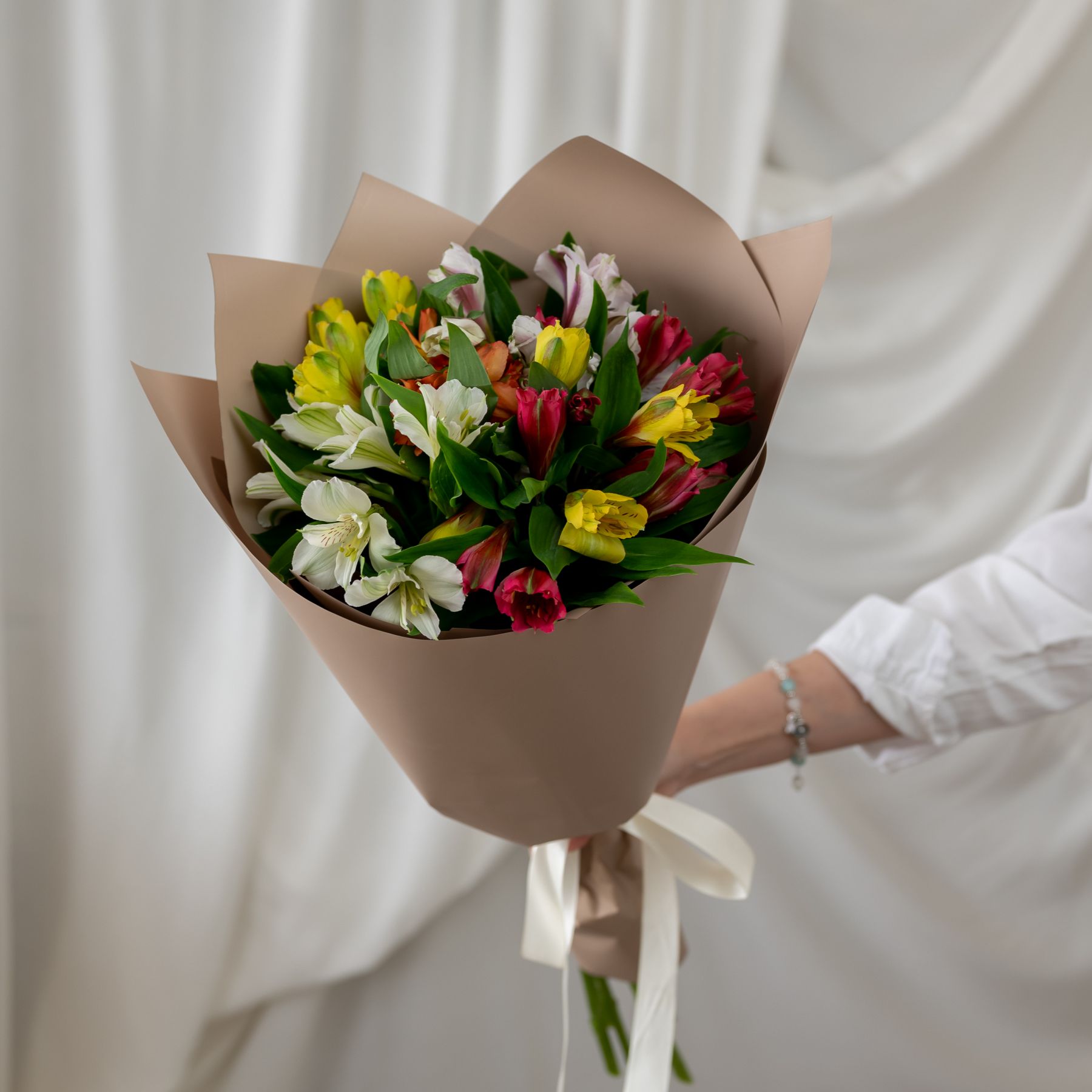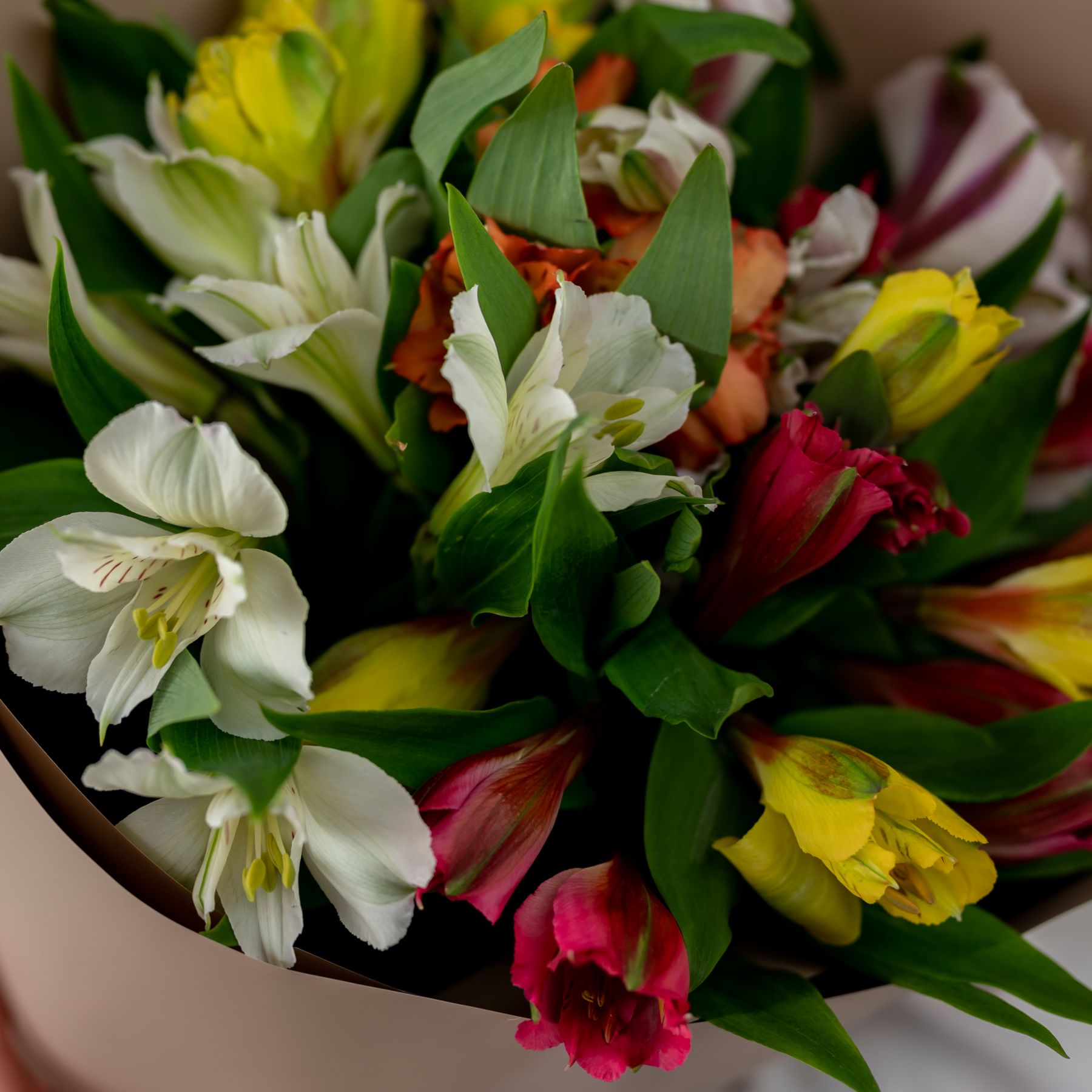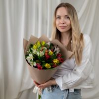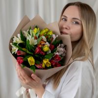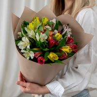 В составе 7 альстромерий микс в дизайнерской упаковке.