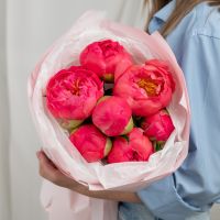 В составе 7 пионов (Корал Шарм) в объемной стильной упаковке.