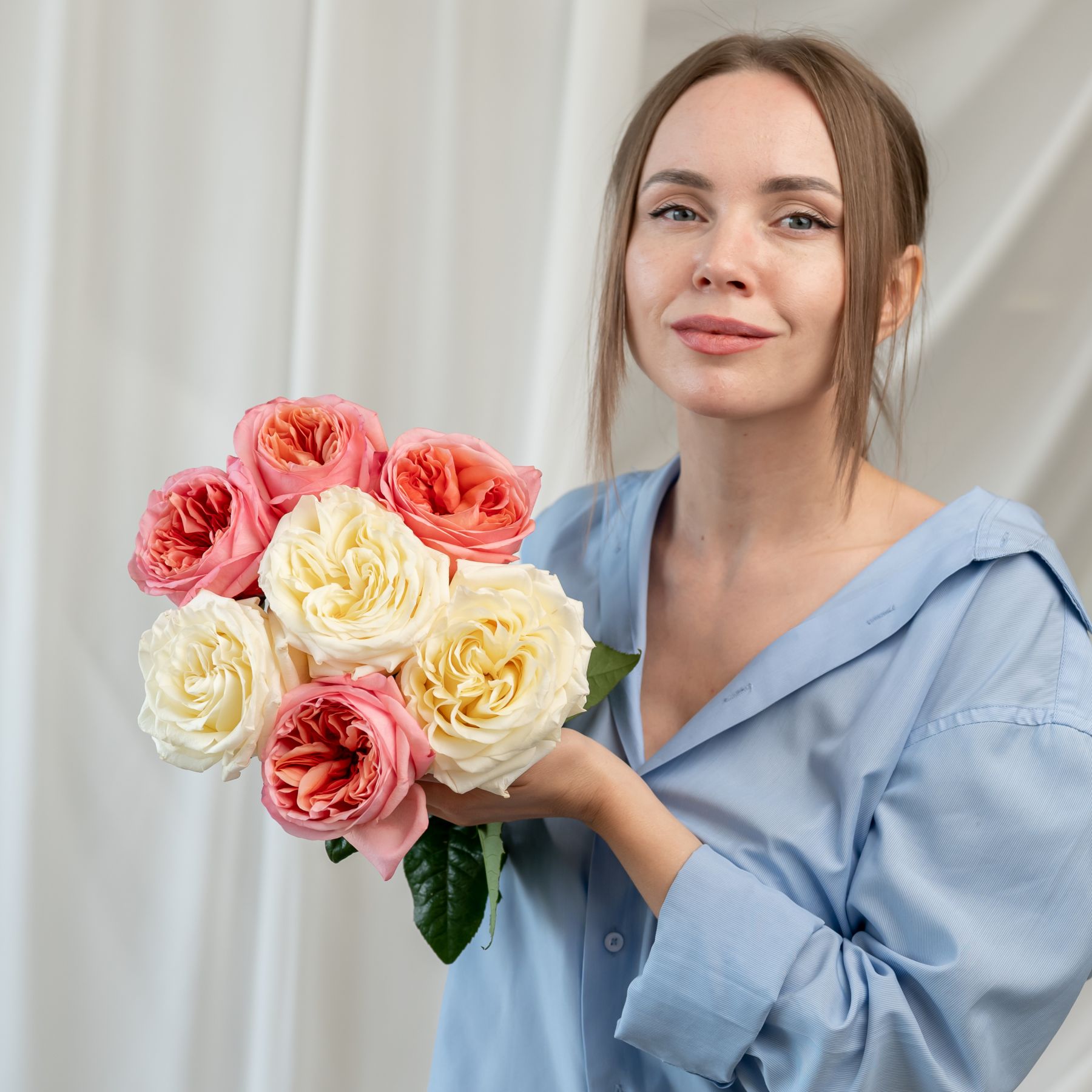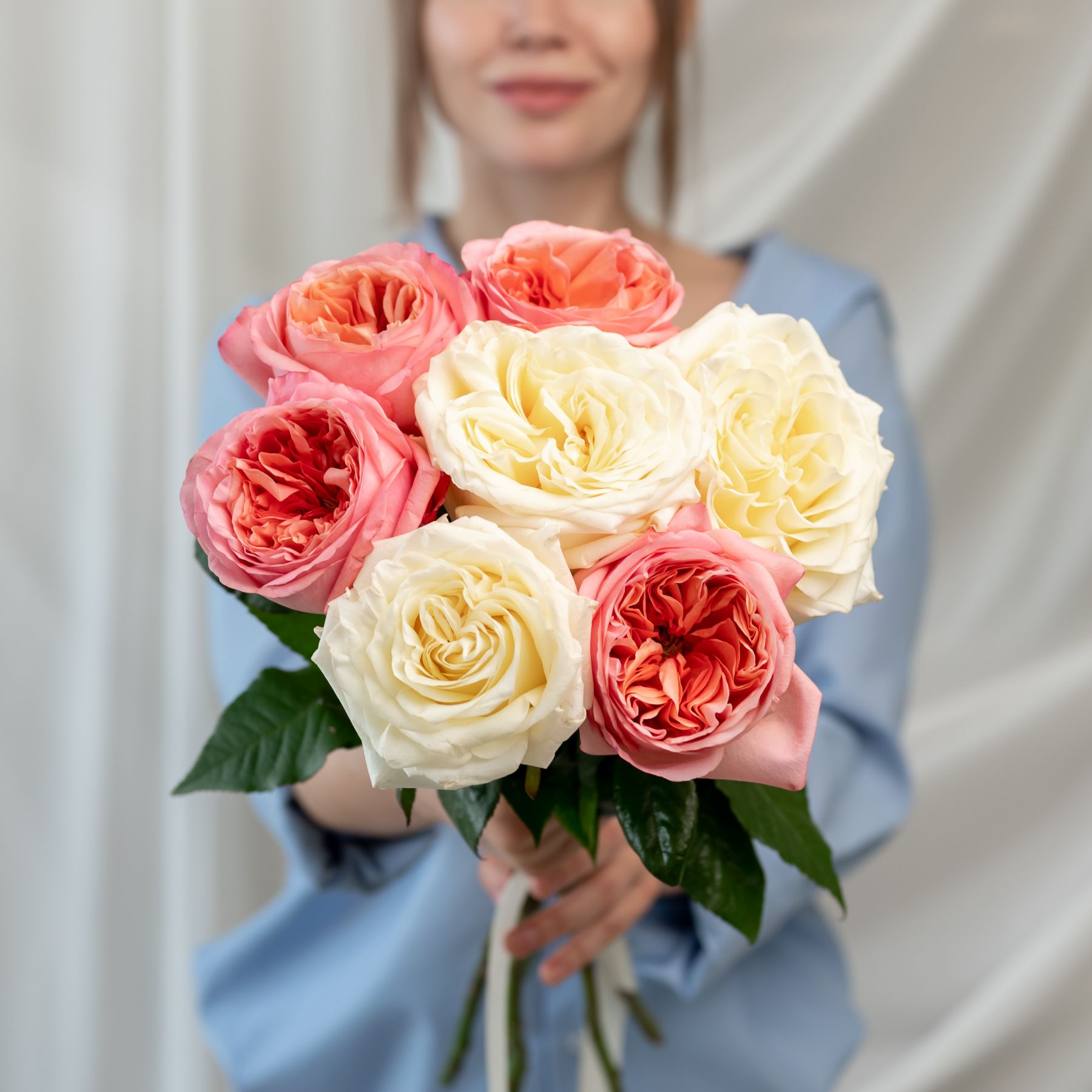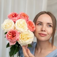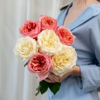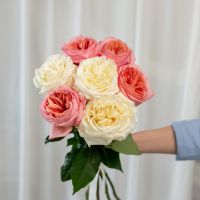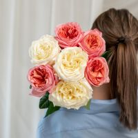 7 пионовидных роз сорт Пинк Экспрешн (4 шт), Кендл Лайт (3 шт)
