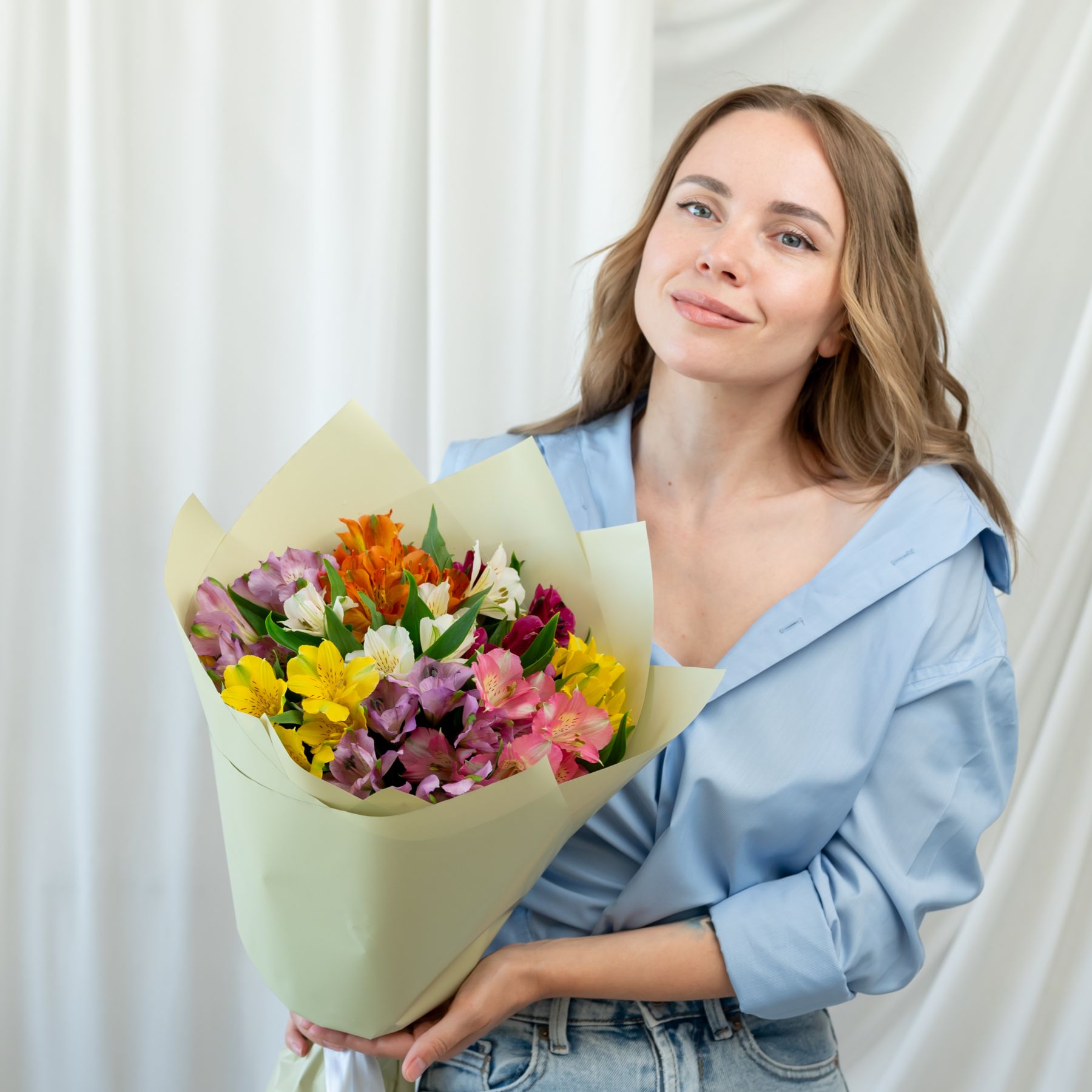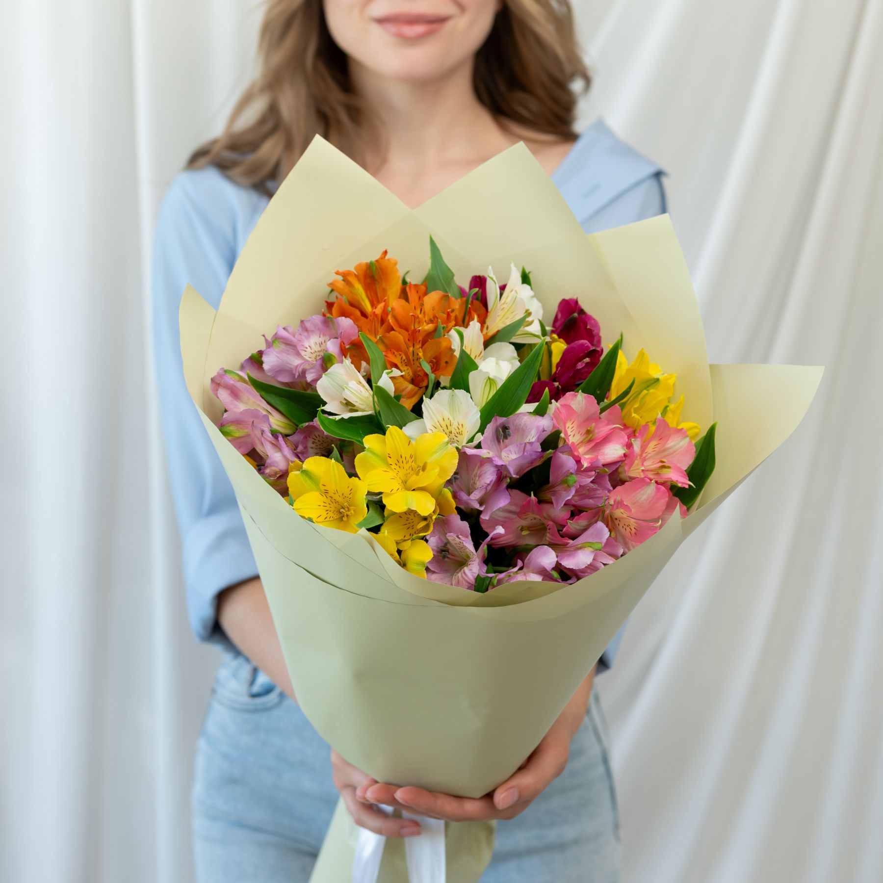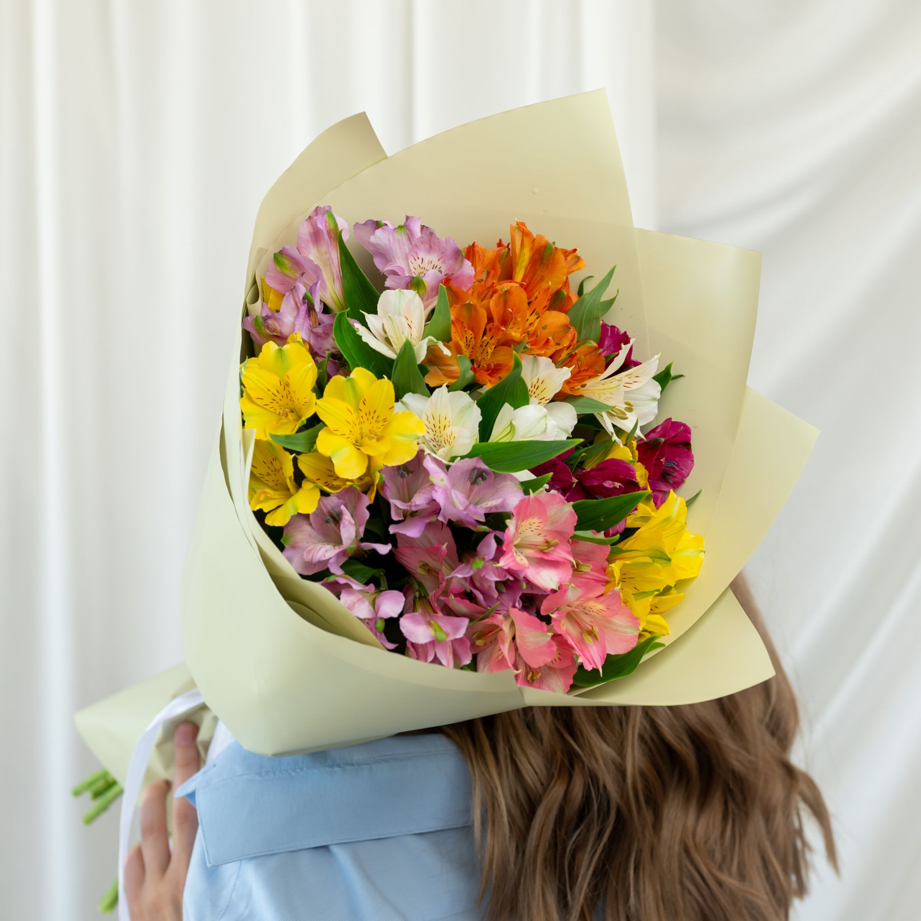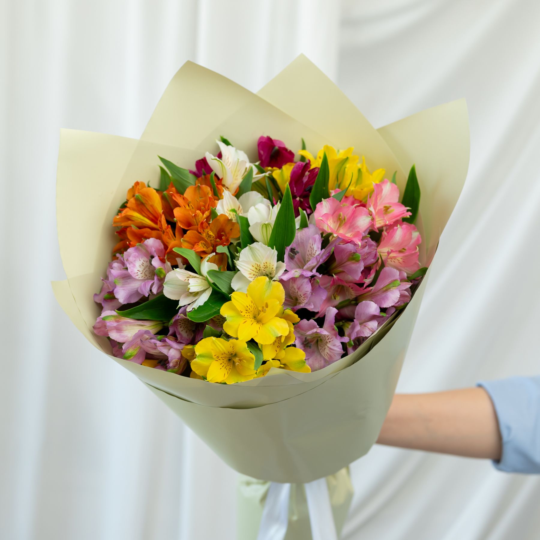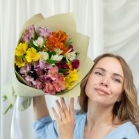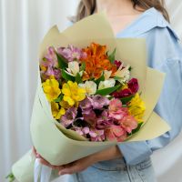В составе 9 альстромерий микс в дизайнерской упаковке.