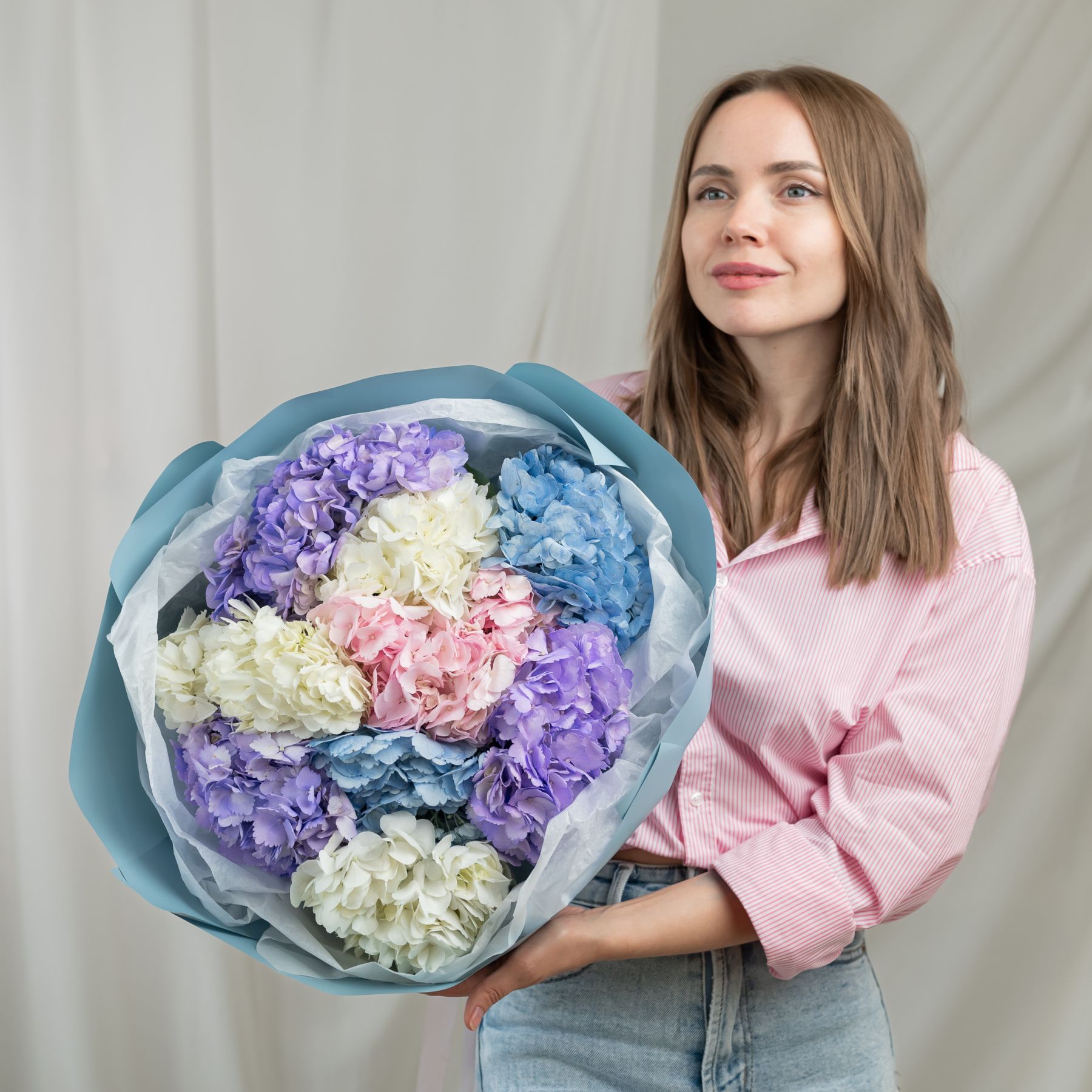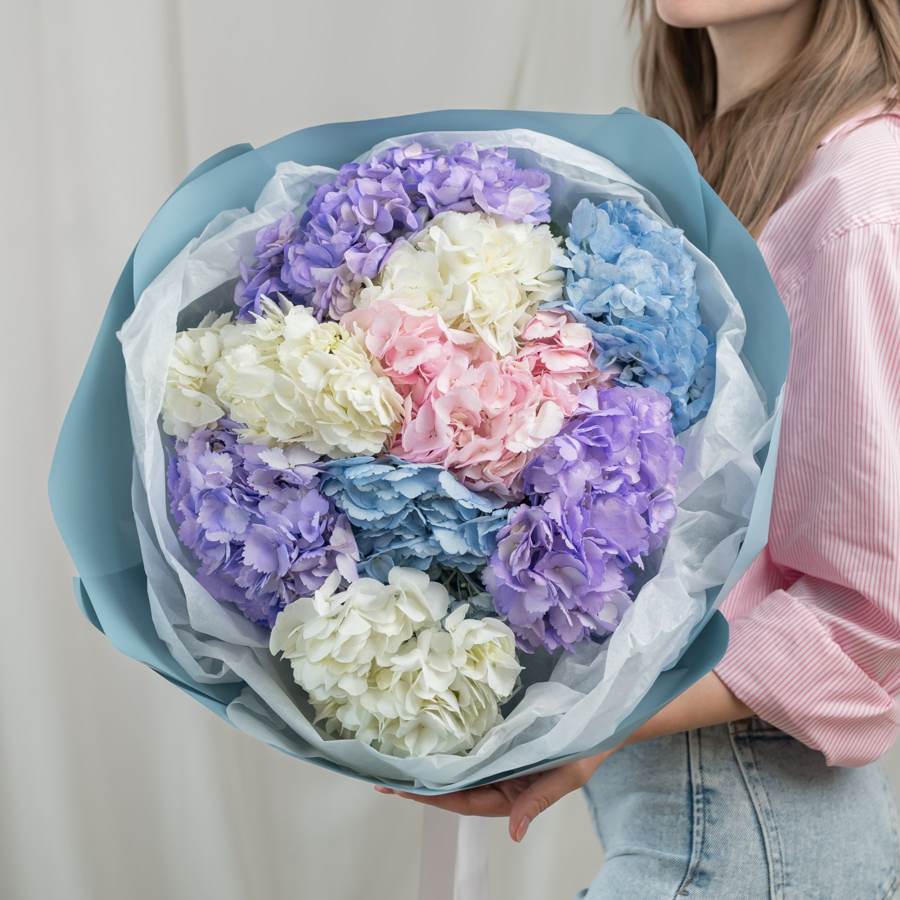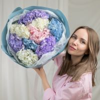 В составе 9 гортензий в объемной красивой упаковке.