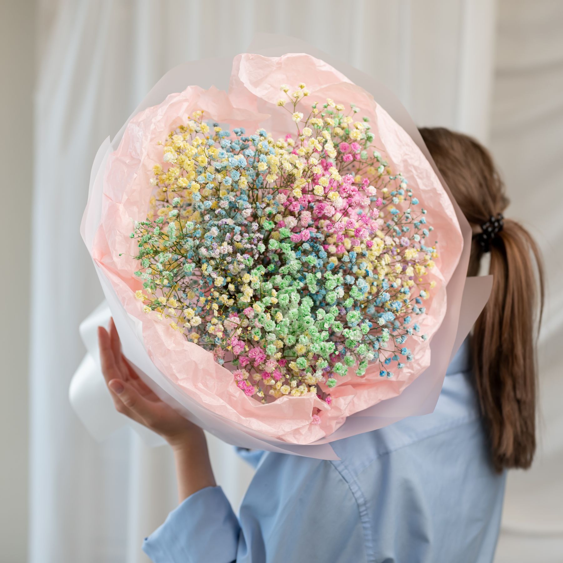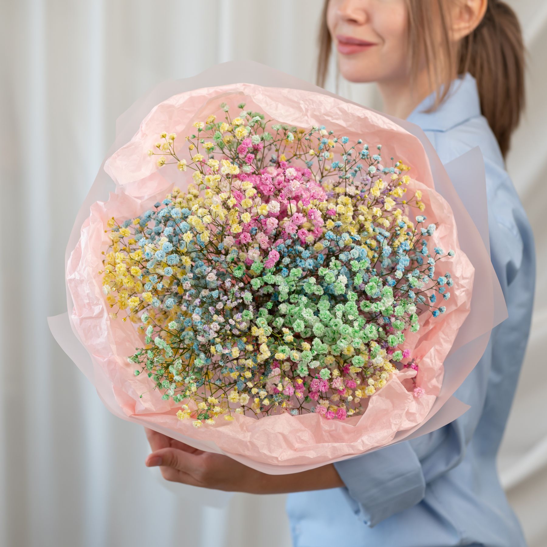 В составе 9 радужных гипсофил в дизайнерской упаковке.