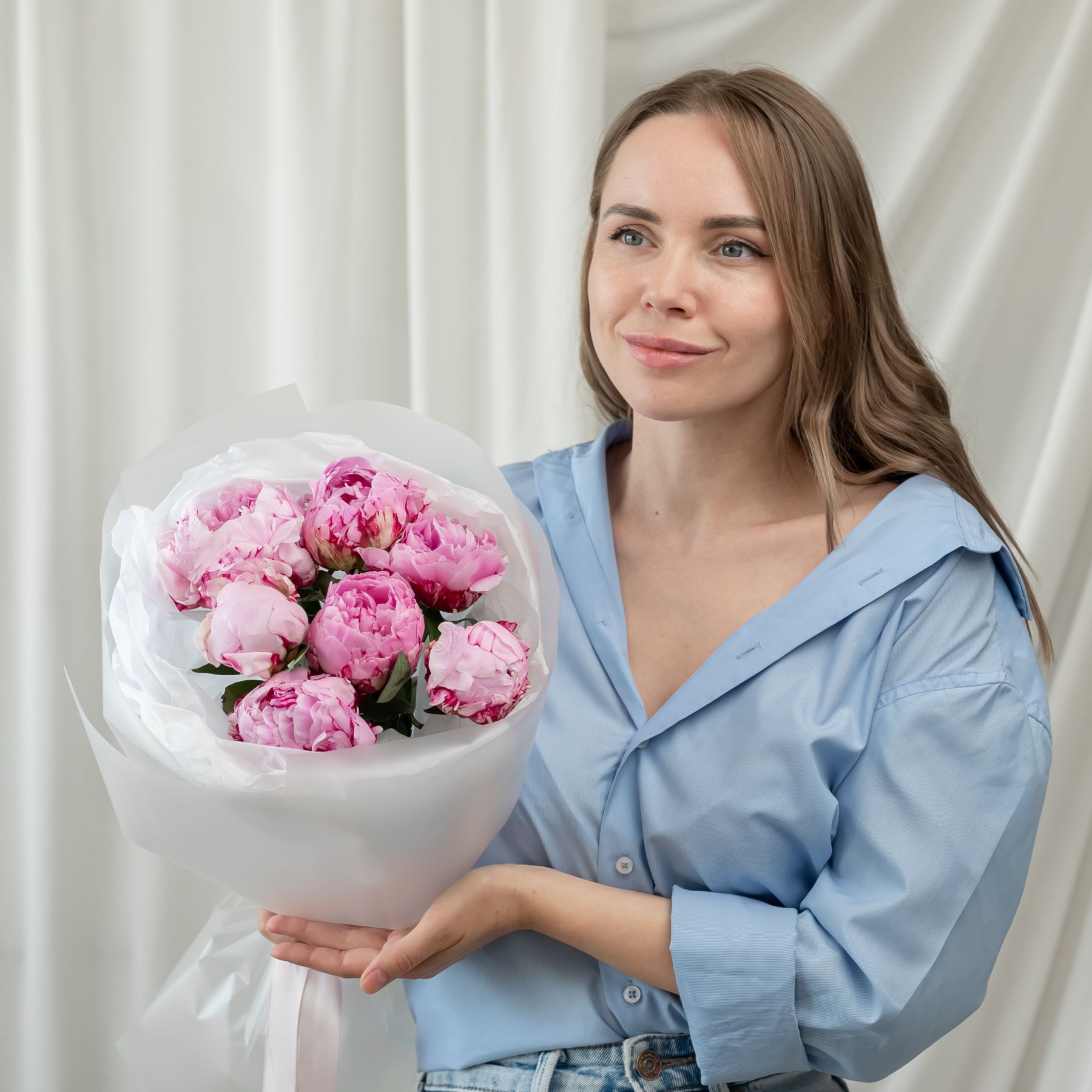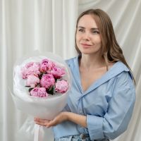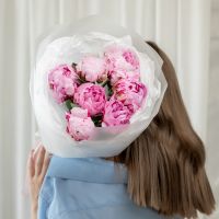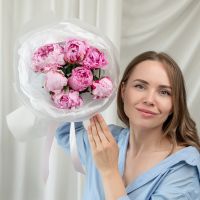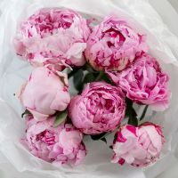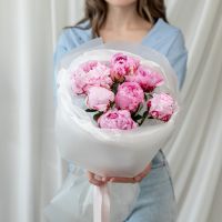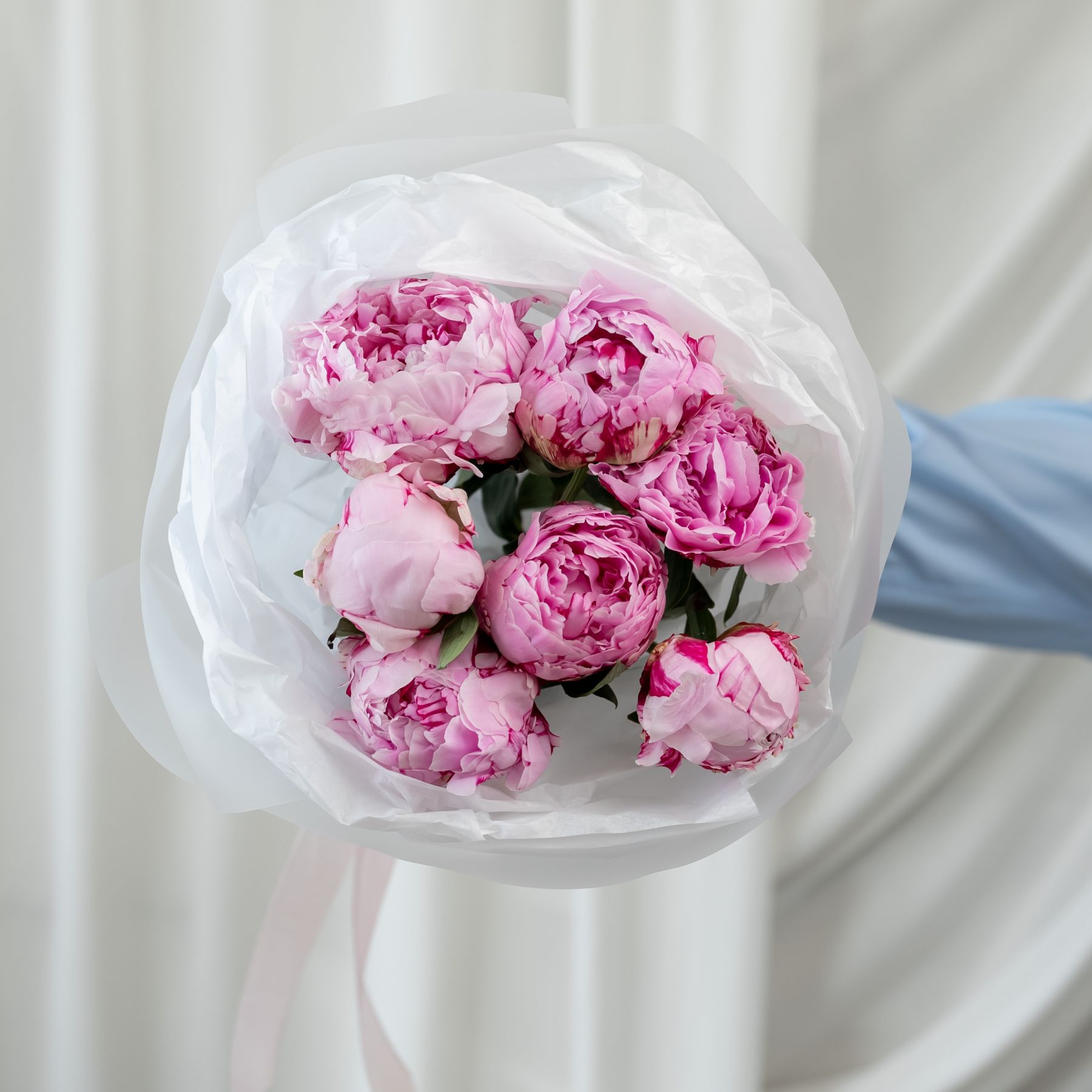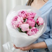 В составе 7 пионов (сорт Сара Бернард) в дизайнерской упаковке.